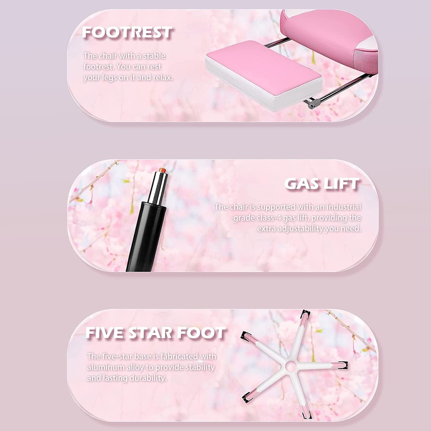 Chaise d'ordinateur sûre et confortable : vérin à gaz de classe 4, durable, fiable et supportant jusqu'à 181 kg. Base 5 branches à haute capacité de charge. Roulettes en caoutchouc silencieuses et testées sur 1 600 km. Chaise gamer pour adultes, adolescents et enfants.
