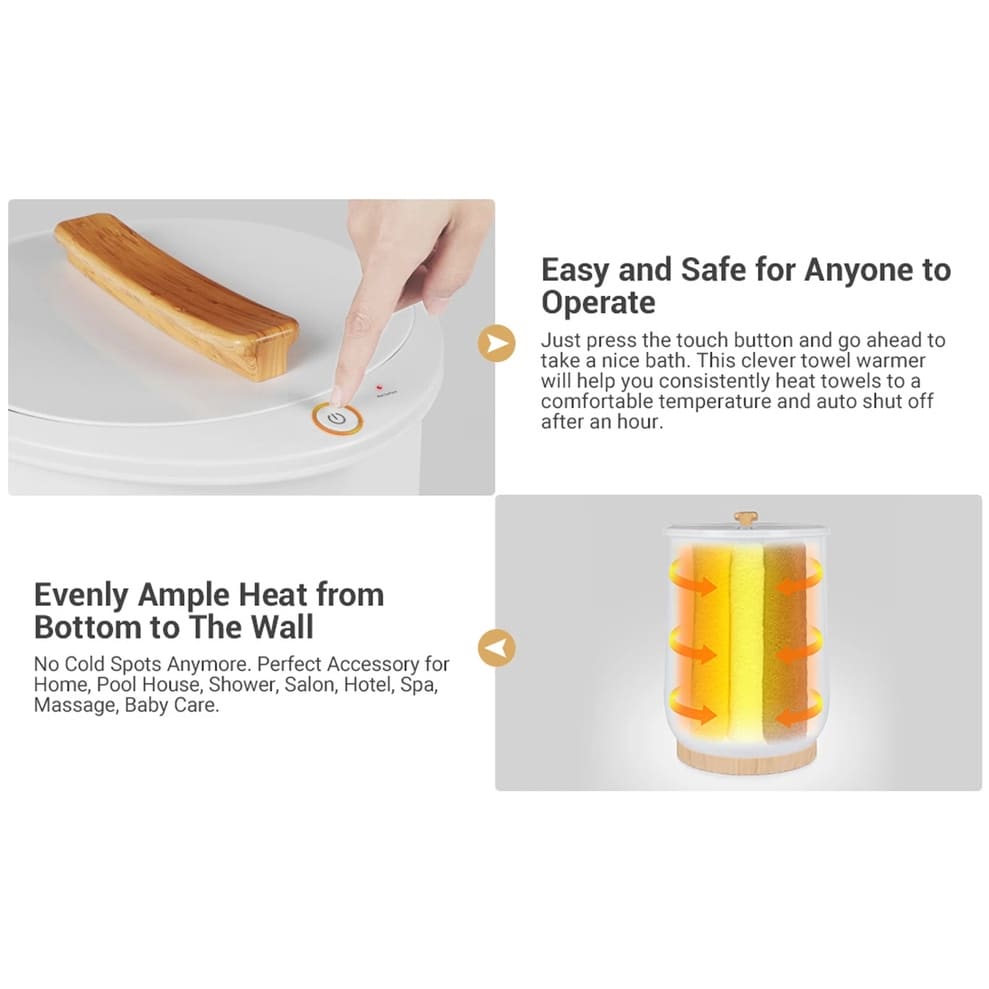Système de chauffage rapide à 360° amélioré : grâce à sa méthode de chauffage unique, la chaleur se diffuse facilement à l'intérieur du sèche-serviettes, pour une chaleur uniforme sous tous les angles. Chauffe rapidement en seulement 1 minute et atteint une température élevée en seulement 6 minutes. Profitez d'une serviette et d'une couverture chaudes et douces après une douche rapide, sans laisser de traces de froid.