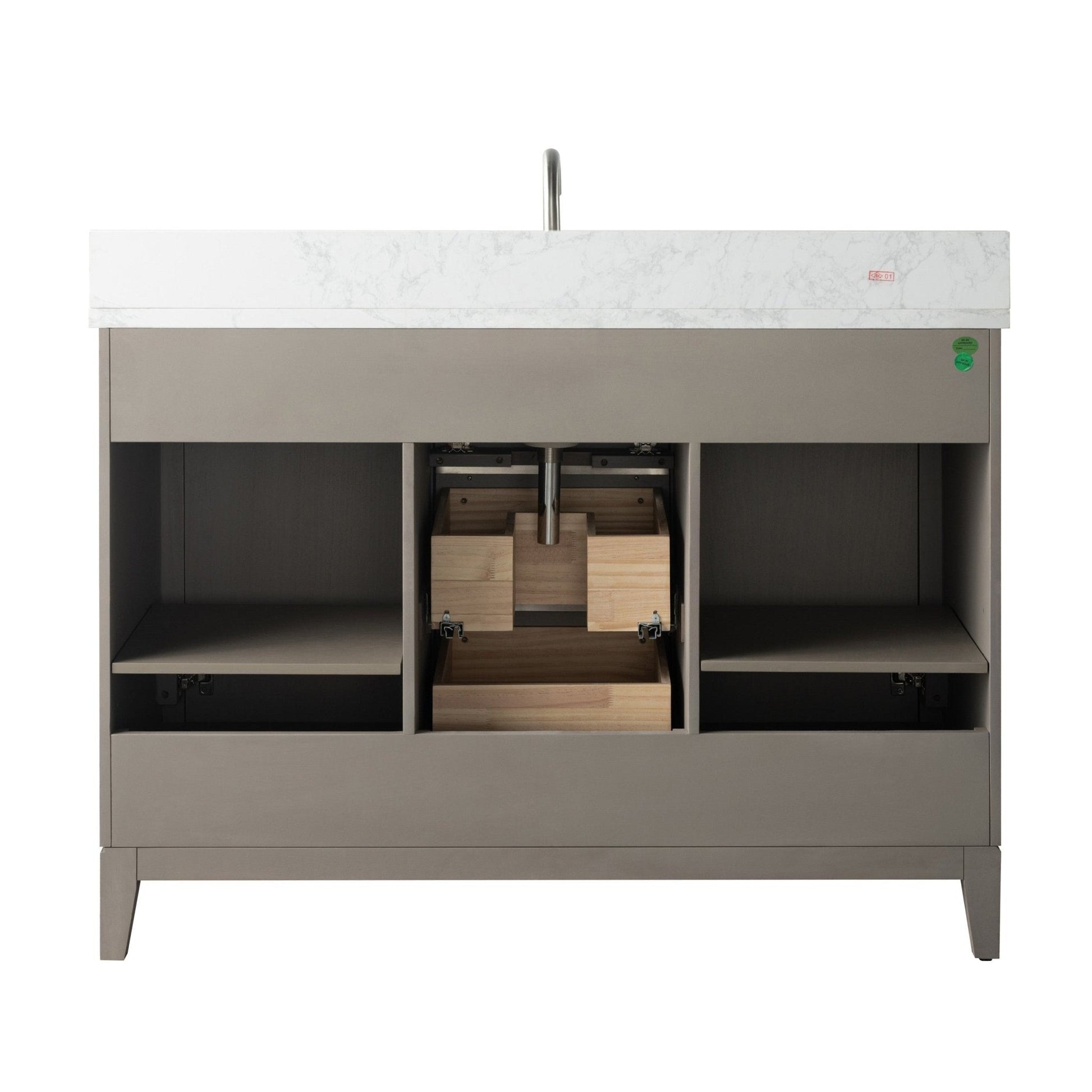 Vanity Art présente le meuble-lavabo haut de gamme en bois de peuplier avec vasque. Il allie parfaitement fonctionnalité et style pour votre intérieur. Cet élément essentiel offre un généreux espace de rangement grâce à son plateau rabattable, ses étagères réglables et ses tiroirs pour ranger vos affaires et les rendre facilement accessibles. Conçu pour être pratique, notre meuble-lavabo est doté d'un élégant plan de travail en marbre reconstitué Ariston, qui apporte une touche d'élégance et est également facile à nettoyer. Le lavabo rectangulaire sous plan complète le plan de travail, créant un style harmonieux et attrayant pour votre salle de bain. Conçu pour durer, notre meuble sous-lavabo avec portes et tiroirs à fermeture amortie est équipé de charnières de qualité supérieure, garantissant un fonctionnement fluide et fiable. Polyvalence : nos meubles-lavabos ne se limitent pas à la salle de bain. Avec leur design élégant et leurs fonctionnalités pratiques, ils s'intègrent parfaitement à un meuble de cuisine avec évier.