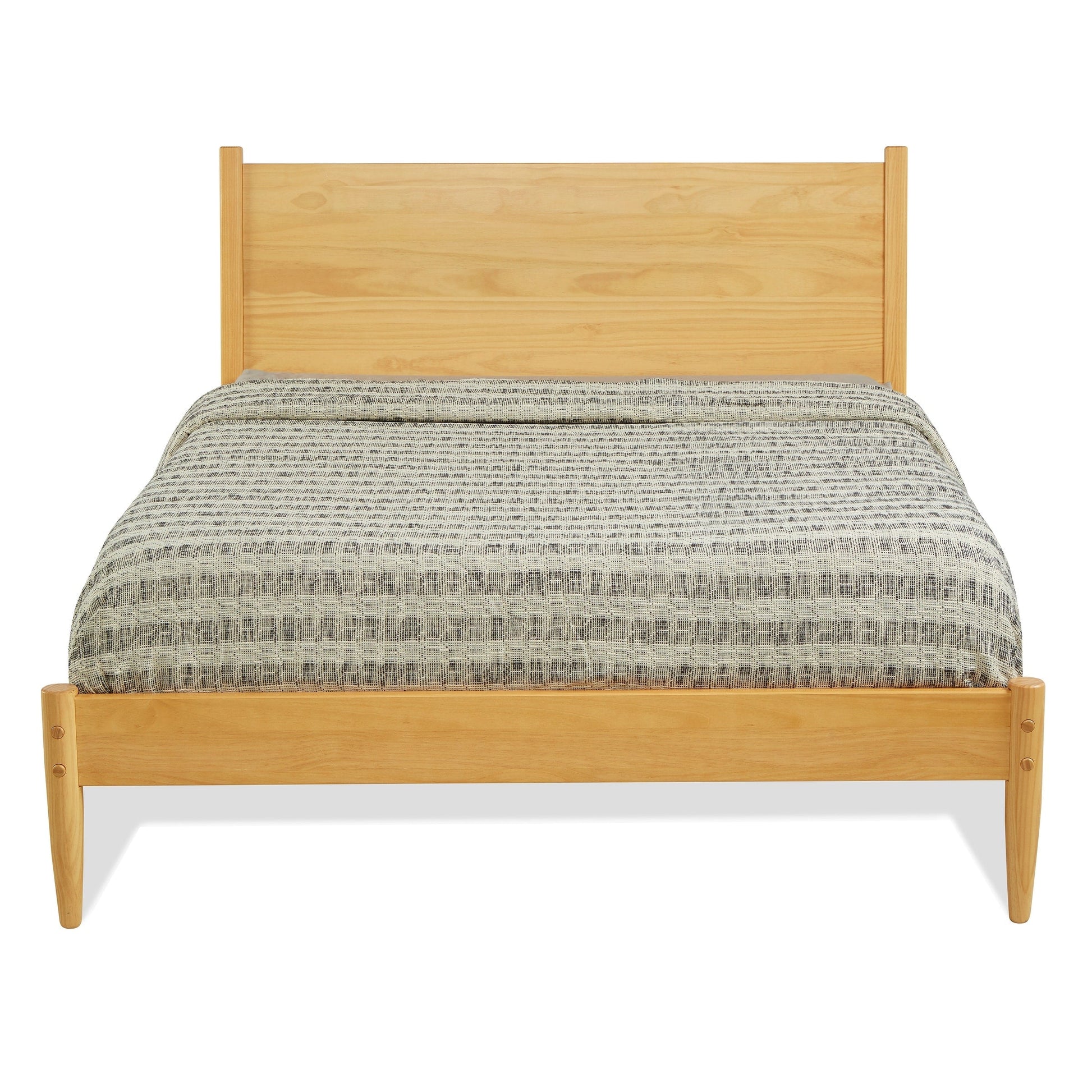 • Tête de lit à panneau lisse avec montants allongés et pieds ronds et effilés