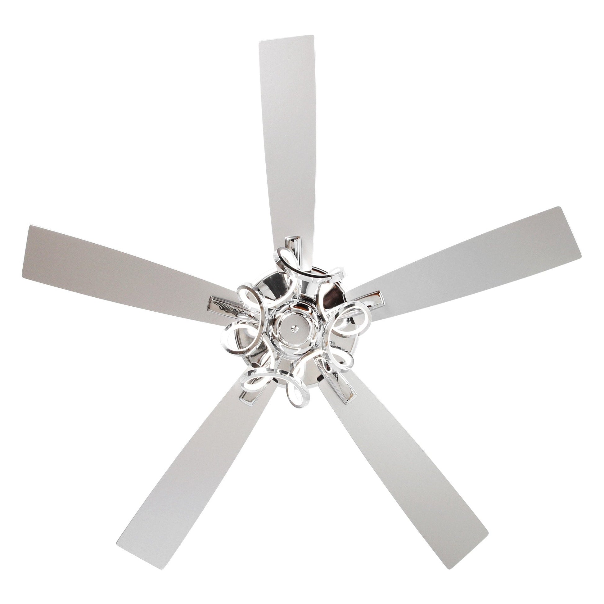 • Luminaire finition chromée avec 5 pales en bois réversibles pour argent et marron foncé