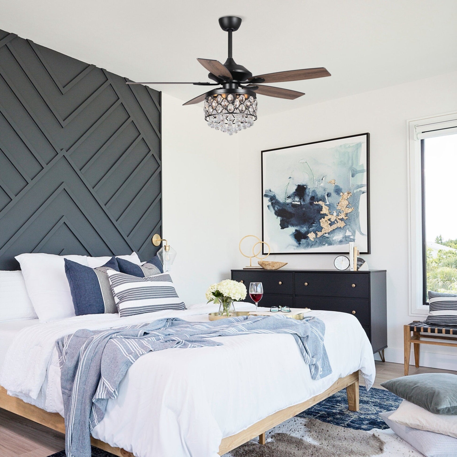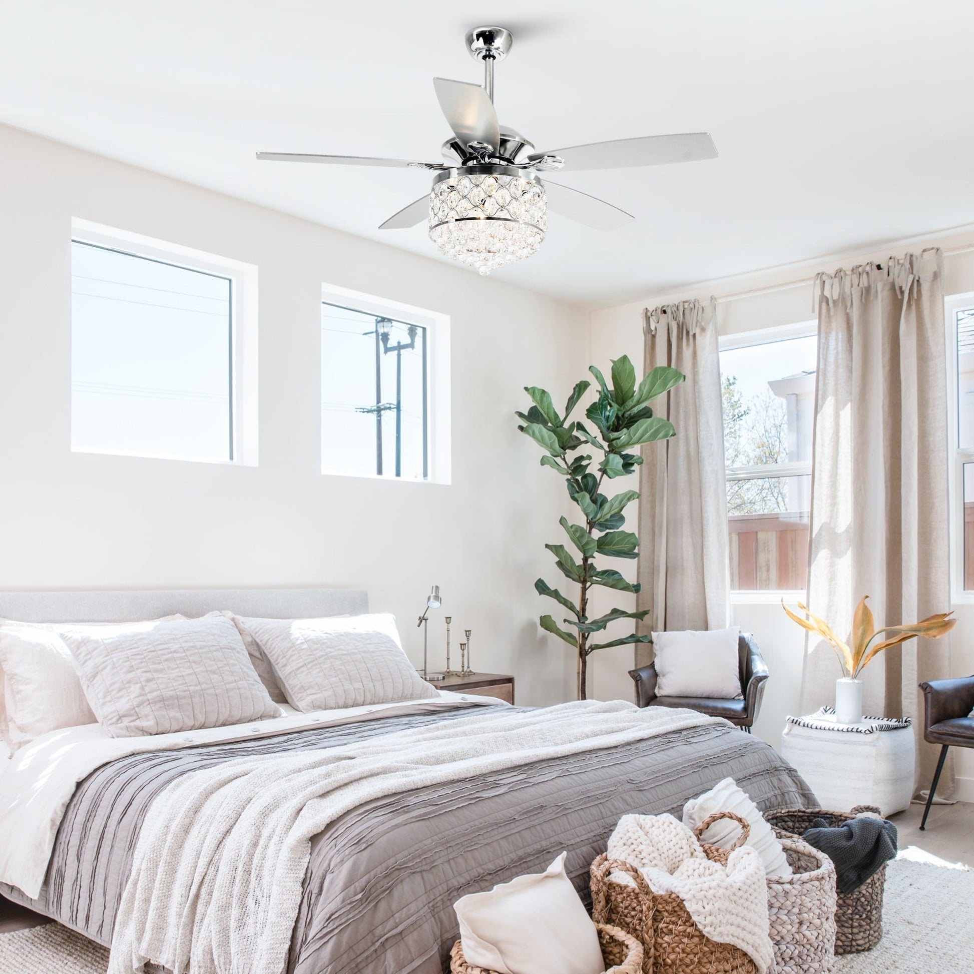 Lustre/ventilateur de plafond à 4 lumières en chrome/cristal...