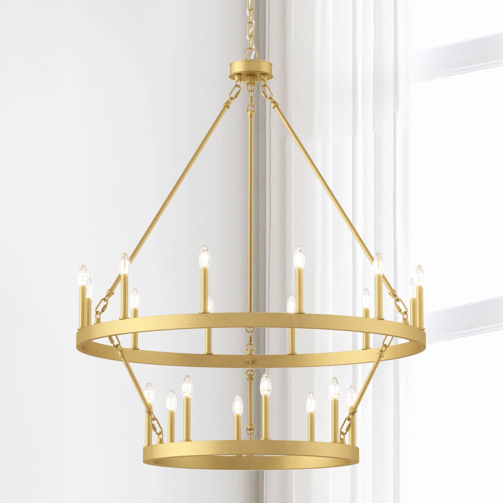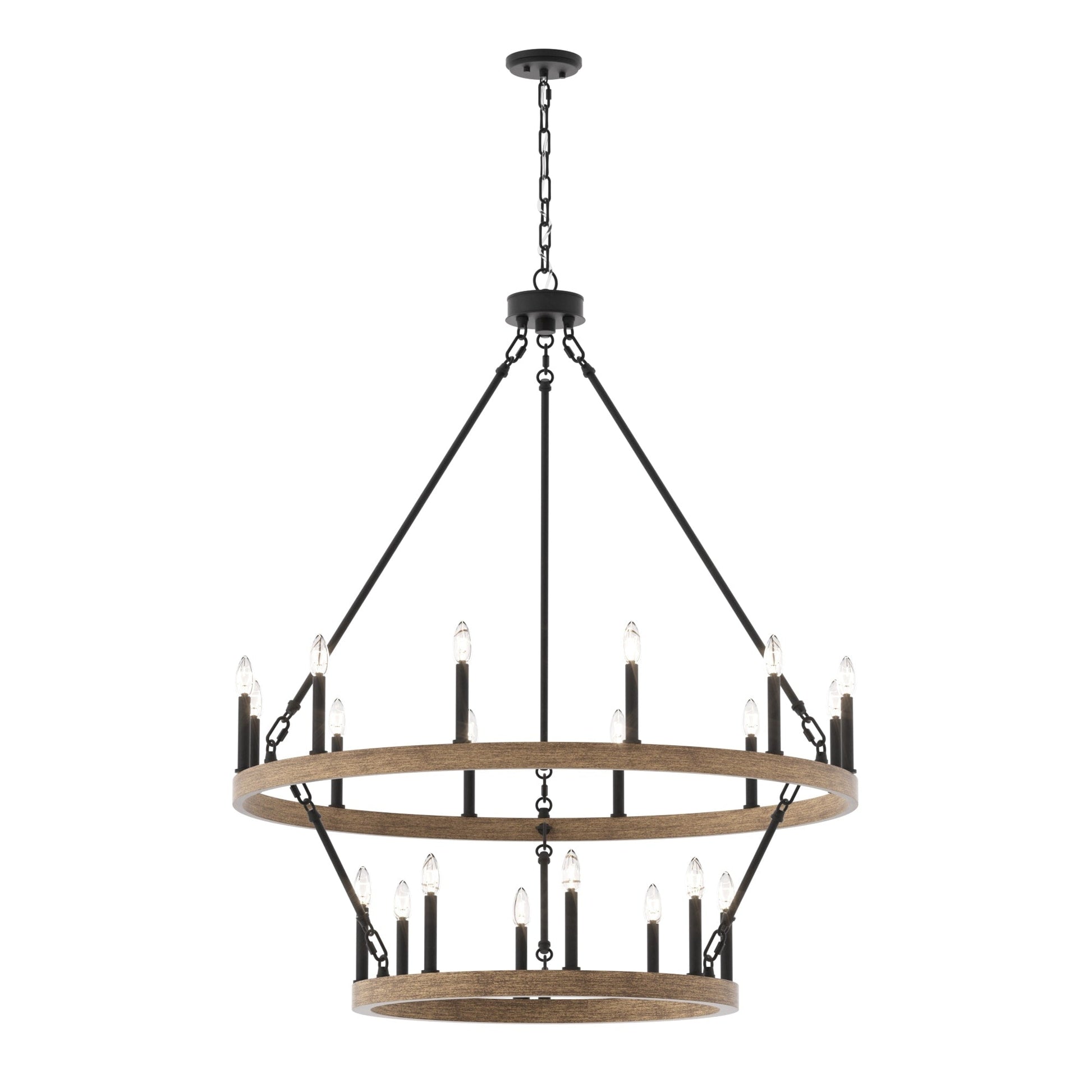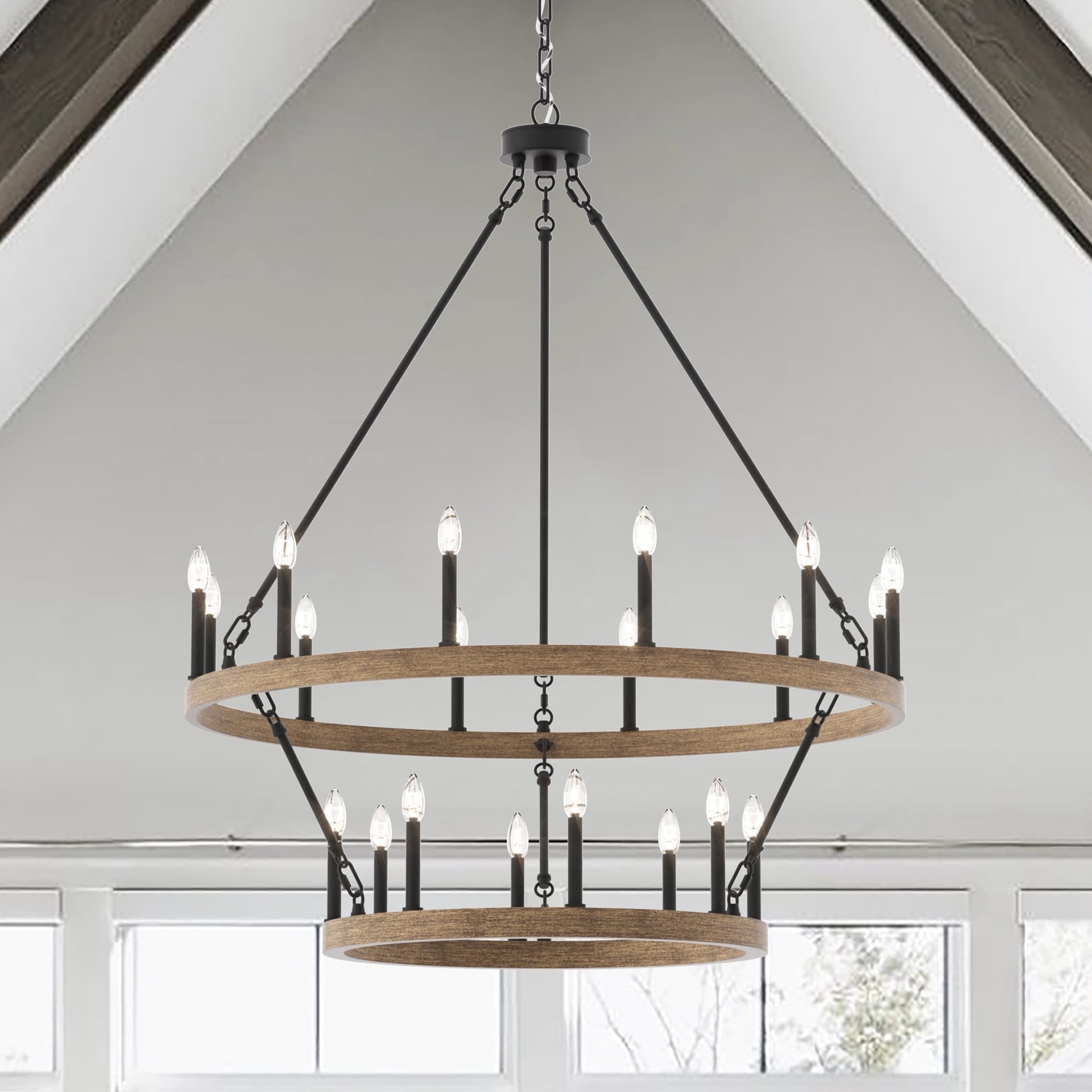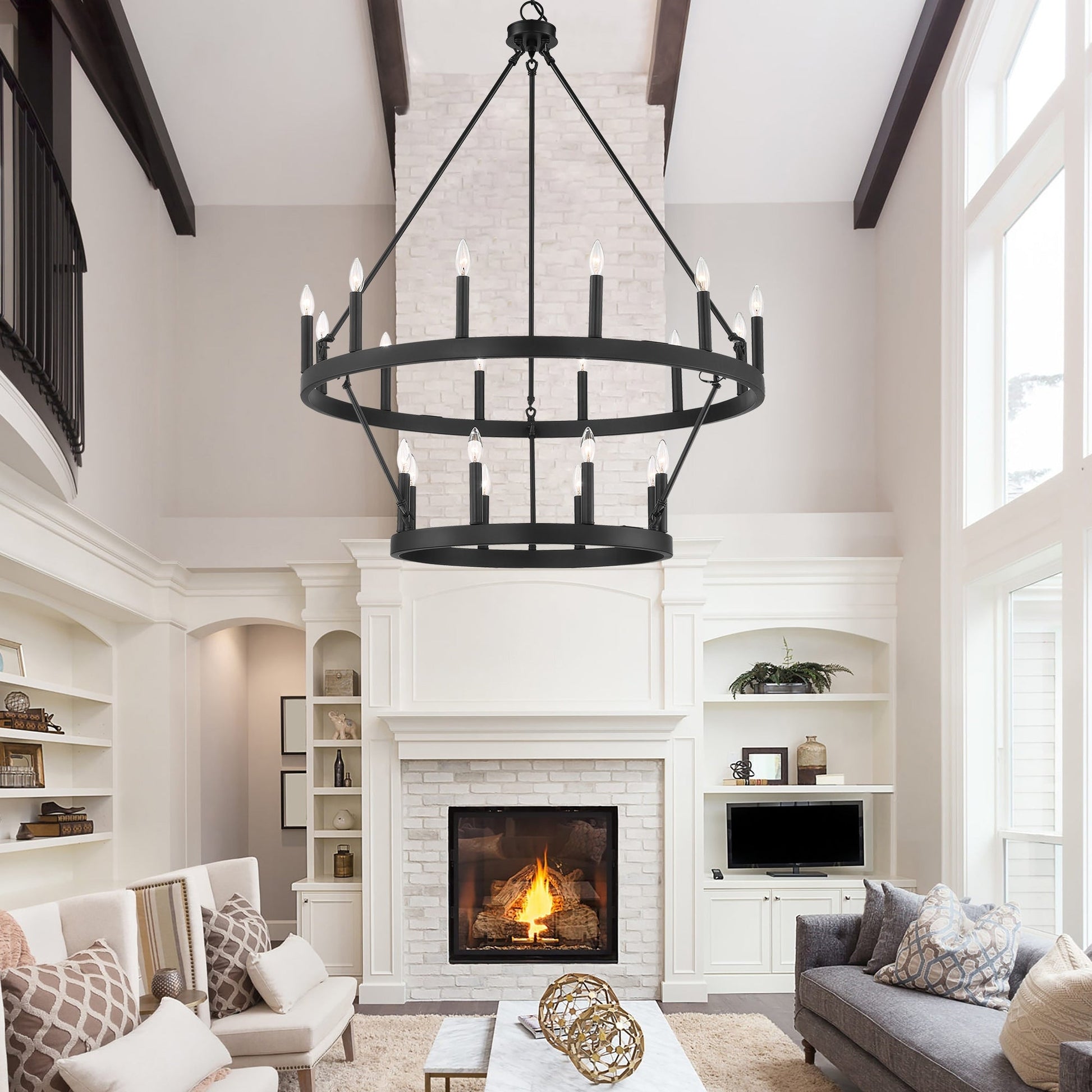 Illuminez votre espace de vie avec le grand lustre rustique Farmhouse en forme de roue de chariot. Fabriqué en acier et disponible dans une variété de couleurs, ce lustre durable s'intègre harmonieusement à de nombreux styles. Avec sa roue de chariot à deux niveaux et ses vingt chandeliers, il est parfait pour éclairer pleinement un grand espace comme un salon, une salle à manger ou un grand hall d'entrée à deux étages. Personnalisez votre espace avec des ampoules à culot bougie pour un style vintage français ou des ampoules à culot bâton pour une touche moderne.