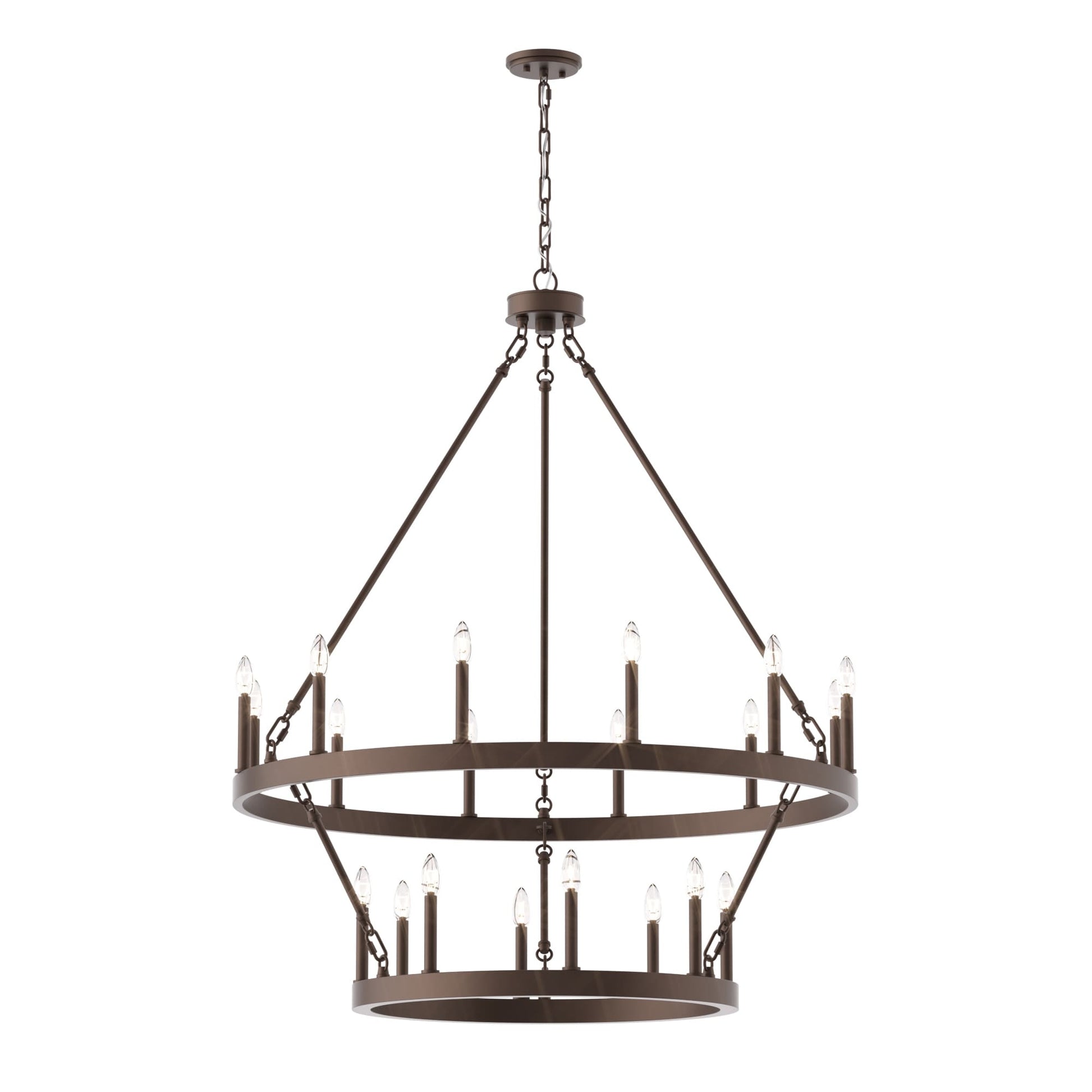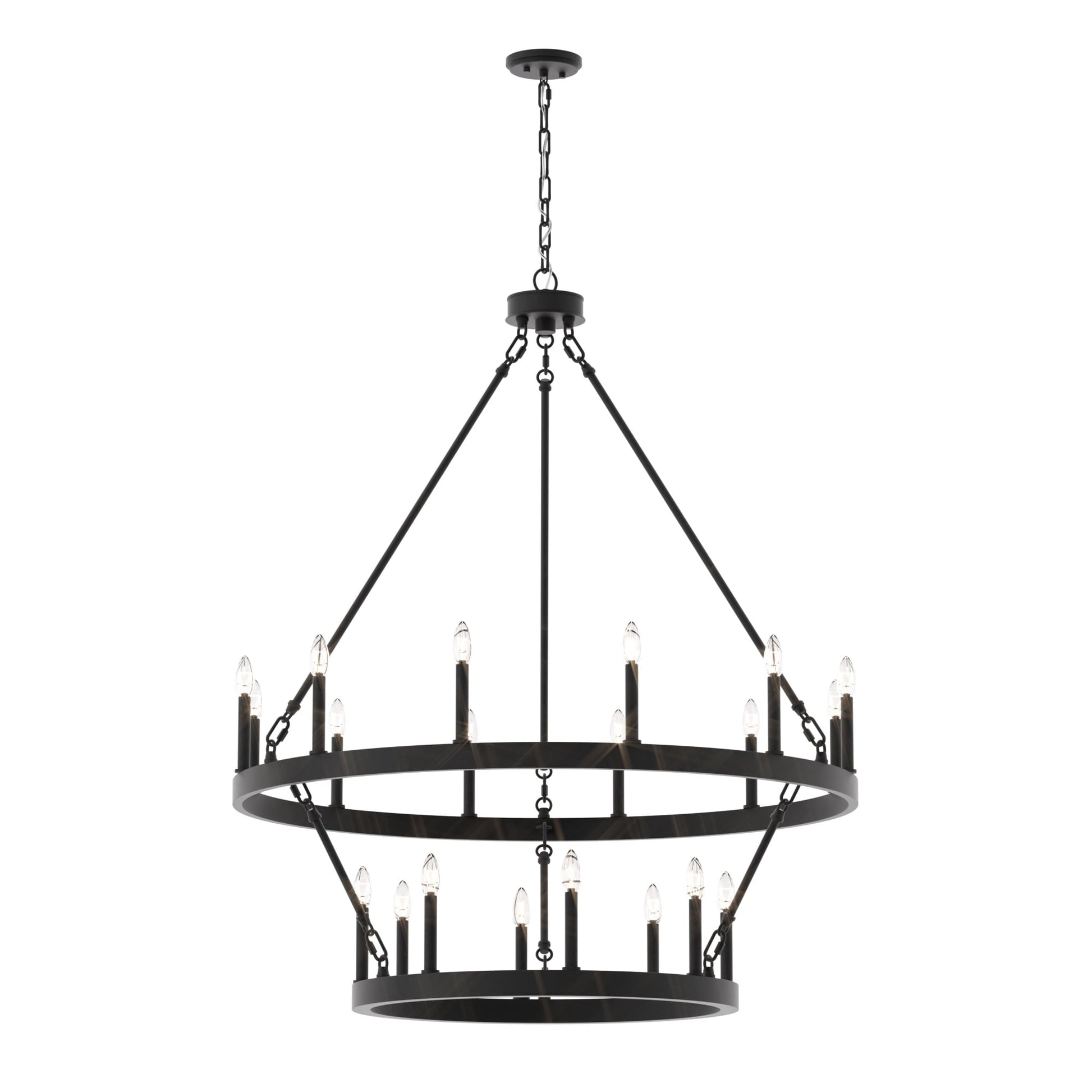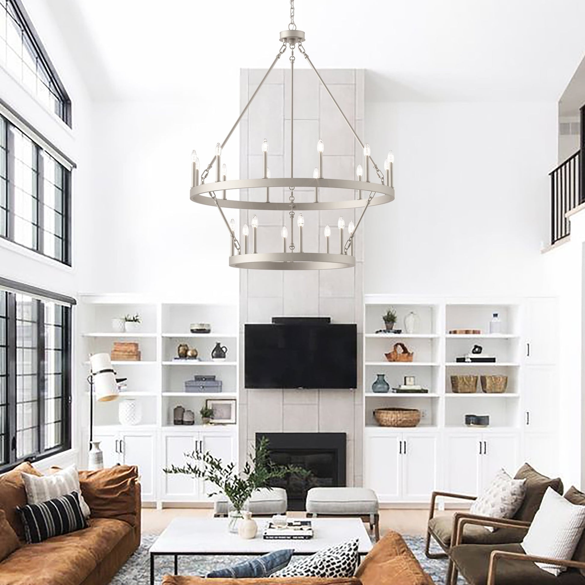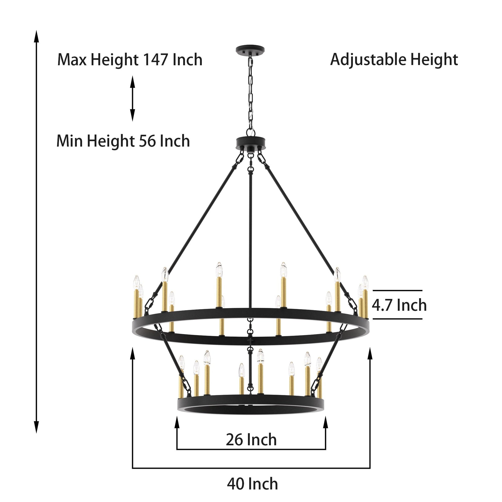 Illuminez votre espace de vie avec le grand lustre rustique Farmhouse en forme de roue de chariot. Fabriqué en acier et disponible dans une variété de couleurs, ce lustre durable s'intègre harmonieusement à de nombreux styles. Avec sa roue de chariot à deux niveaux et ses vingt chandeliers, il est parfait pour éclairer pleinement un grand espace comme un salon, une salle à manger ou un grand hall d'entrée à deux étages. Personnalisez votre espace avec des ampoules à culot bougie pour un style vintage français ou des ampoules à culot bâton pour une touche moderne.