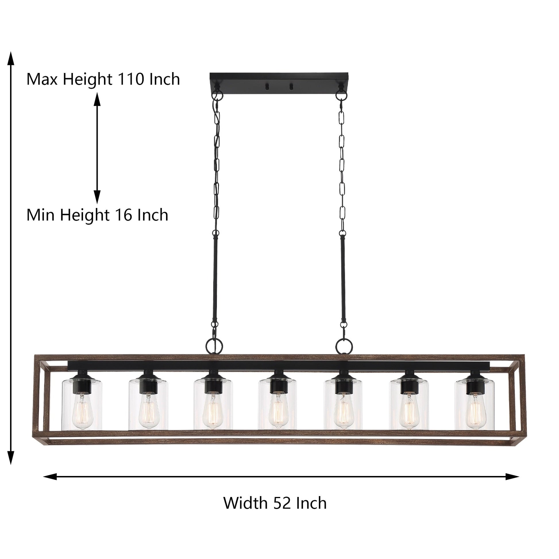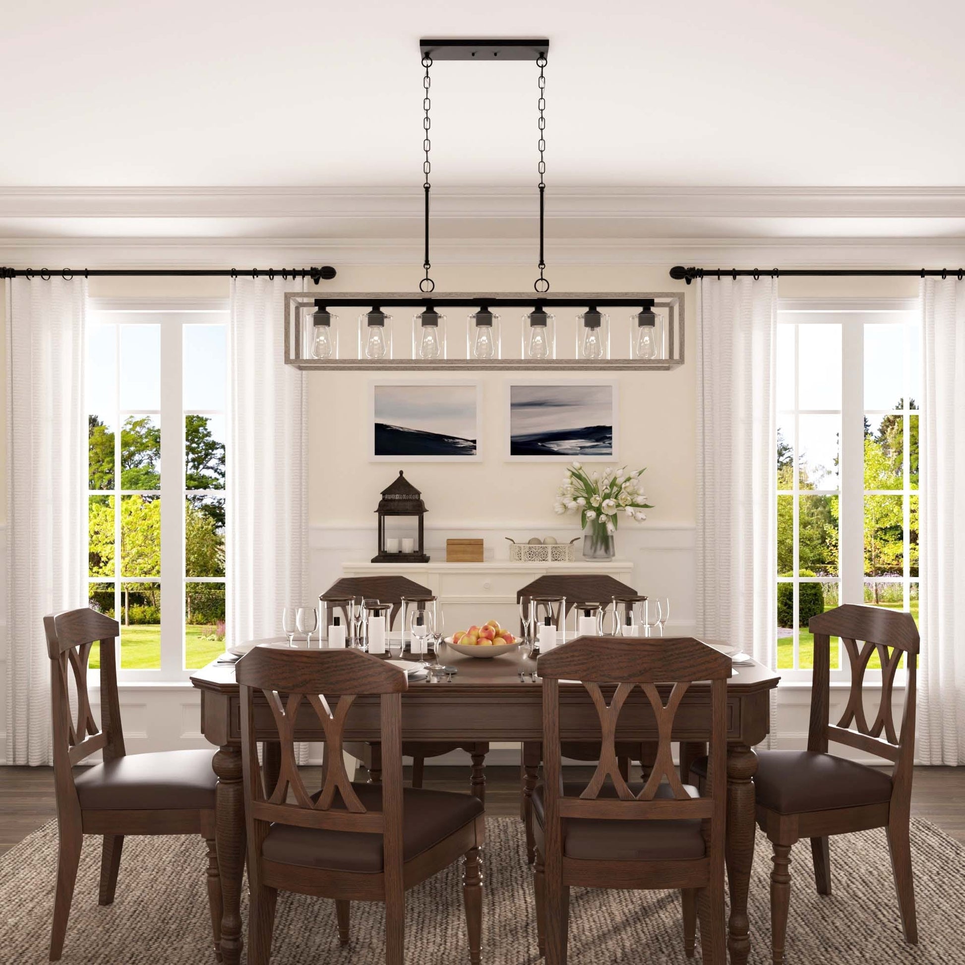 Lustre linéaire rectangulaire Allegray Farmhouse de 52 po à 7 lumières pour îlot de cuisine