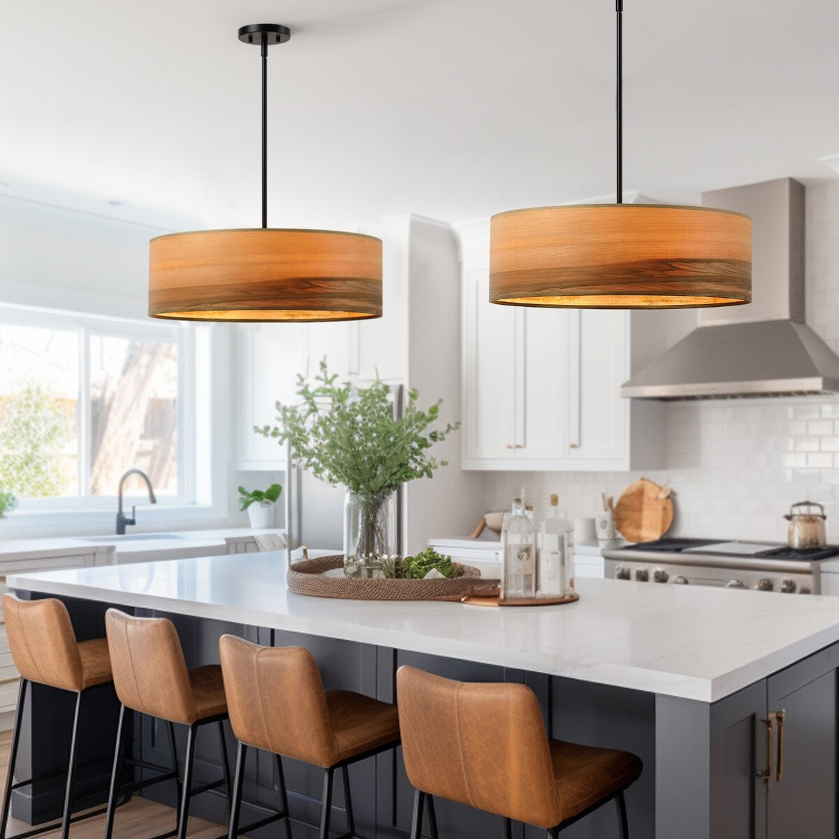 L'abat-jour de 55 cm de large est fabriqué en bois de pommier véritable. Il s'intègre parfaitement à tous les styles de décoration, du transitionnel au contemporain, du décontracté à l'éclectique, en passant par le rustique, le vintage, etc., grâce à sa beauté naturelle et à ses subtiles lueurs filtrées par l'éclairage. C'est une pièce remarquable et accrocheuse pour le salon, la chambre, l'entrée, ou au-dessus d'un îlot de cuisine, d'une table à manger ou d'un bar.
