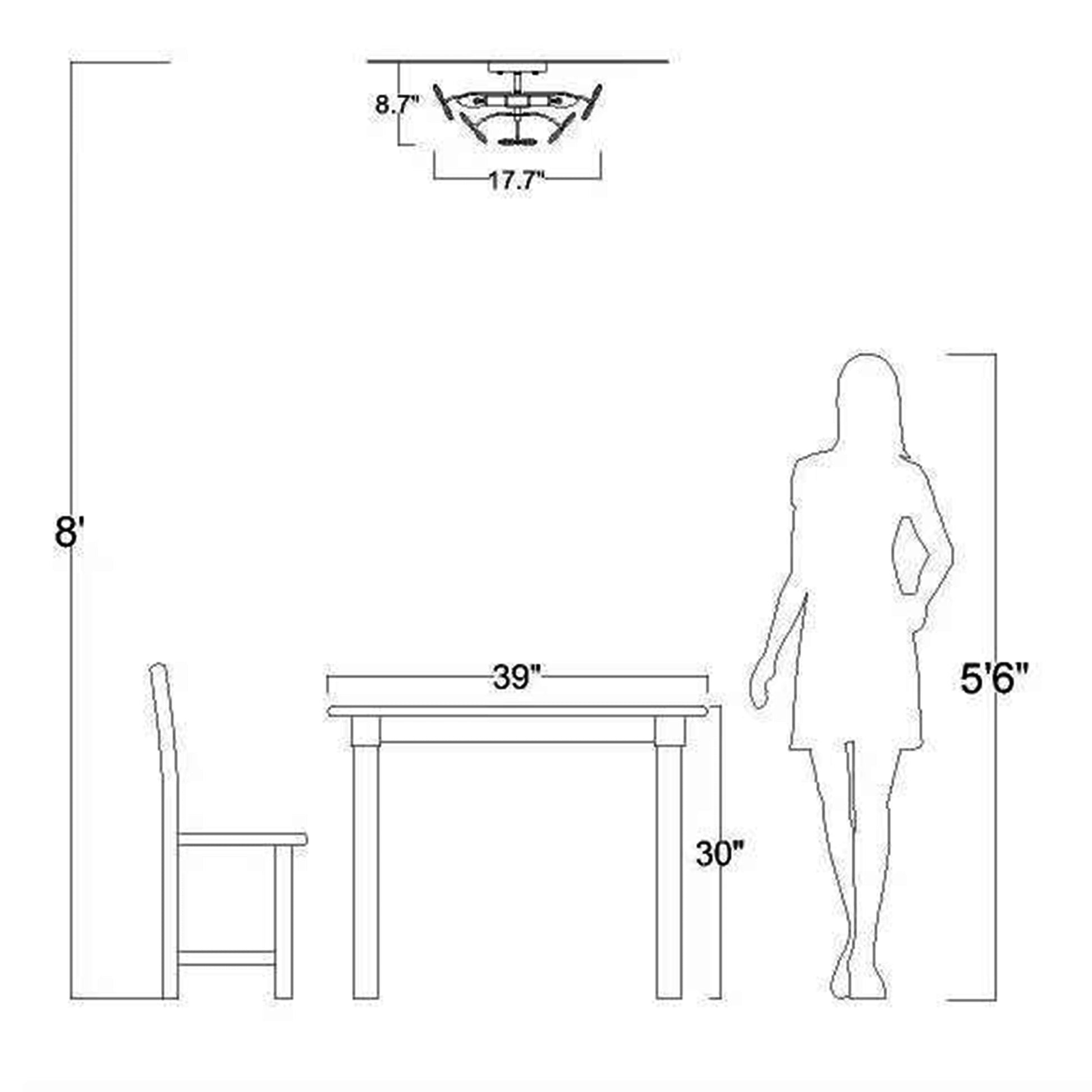 • Luminaire : 17,7 pouces de diamètre x 8,7 pouces de hauteur ; Plaque de plafond : 5,9 pouces de diamètre x 1 pouce de hauteur.