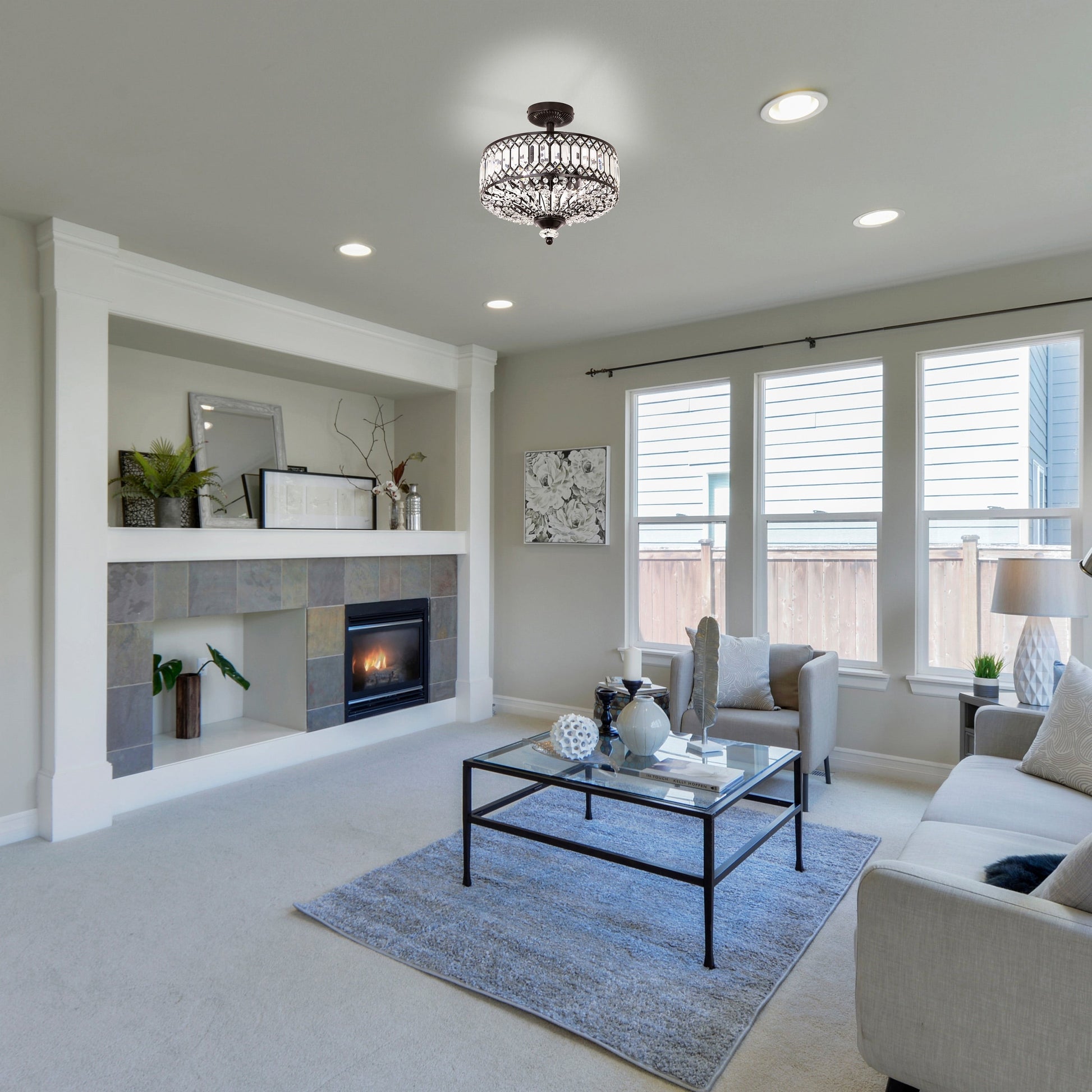 Luminaire semi-encastré en verre à plusieurs niveaux Silver...