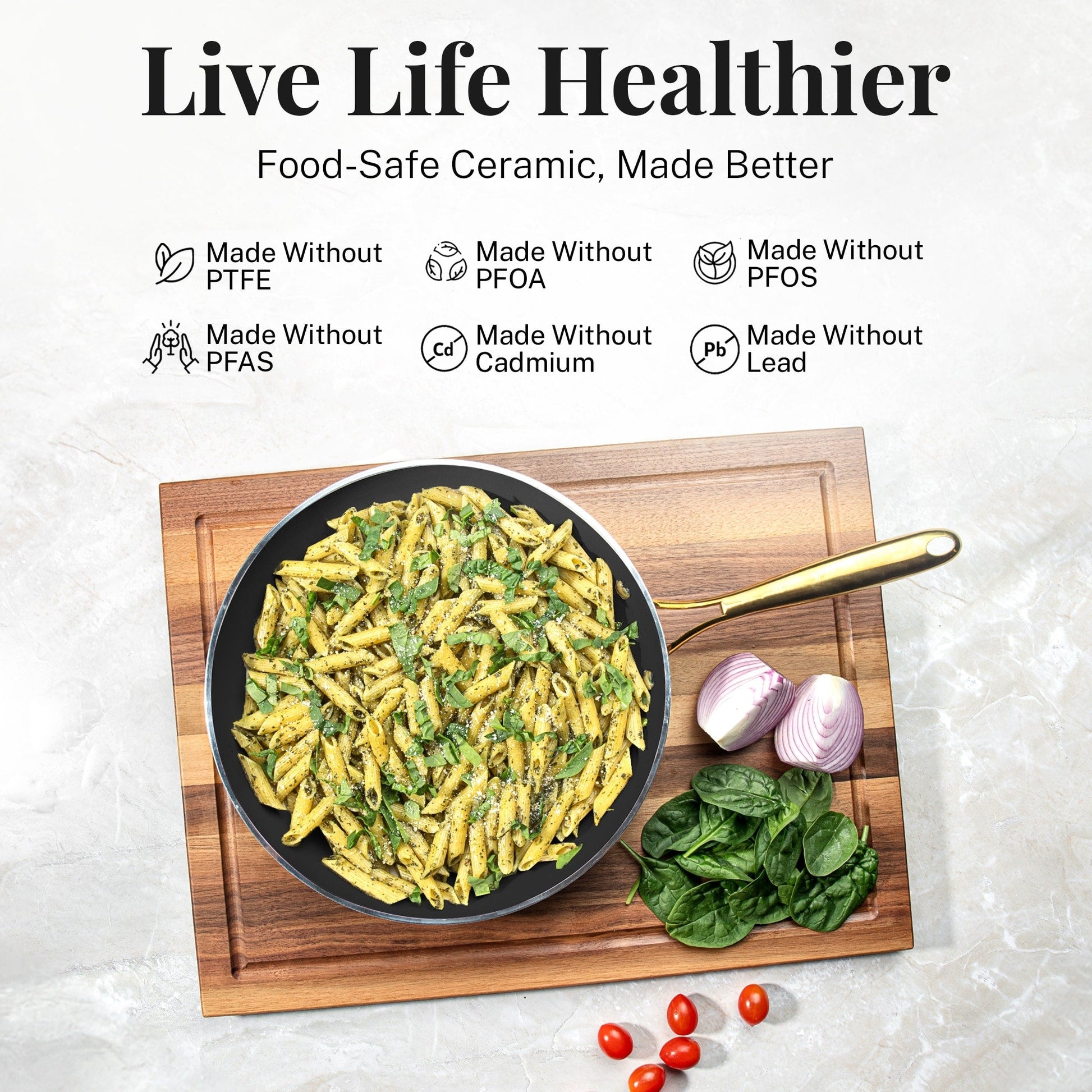 • Sûr et non toxique : Fabriqué sans PTFE, PFOA, PFOS, PFAS, plomb et cadmium, cet ensemble de batterie de cuisine favorise une cuisine plus saine pour vous et votre famille, ce qui en fait un choix écologique et sûr.