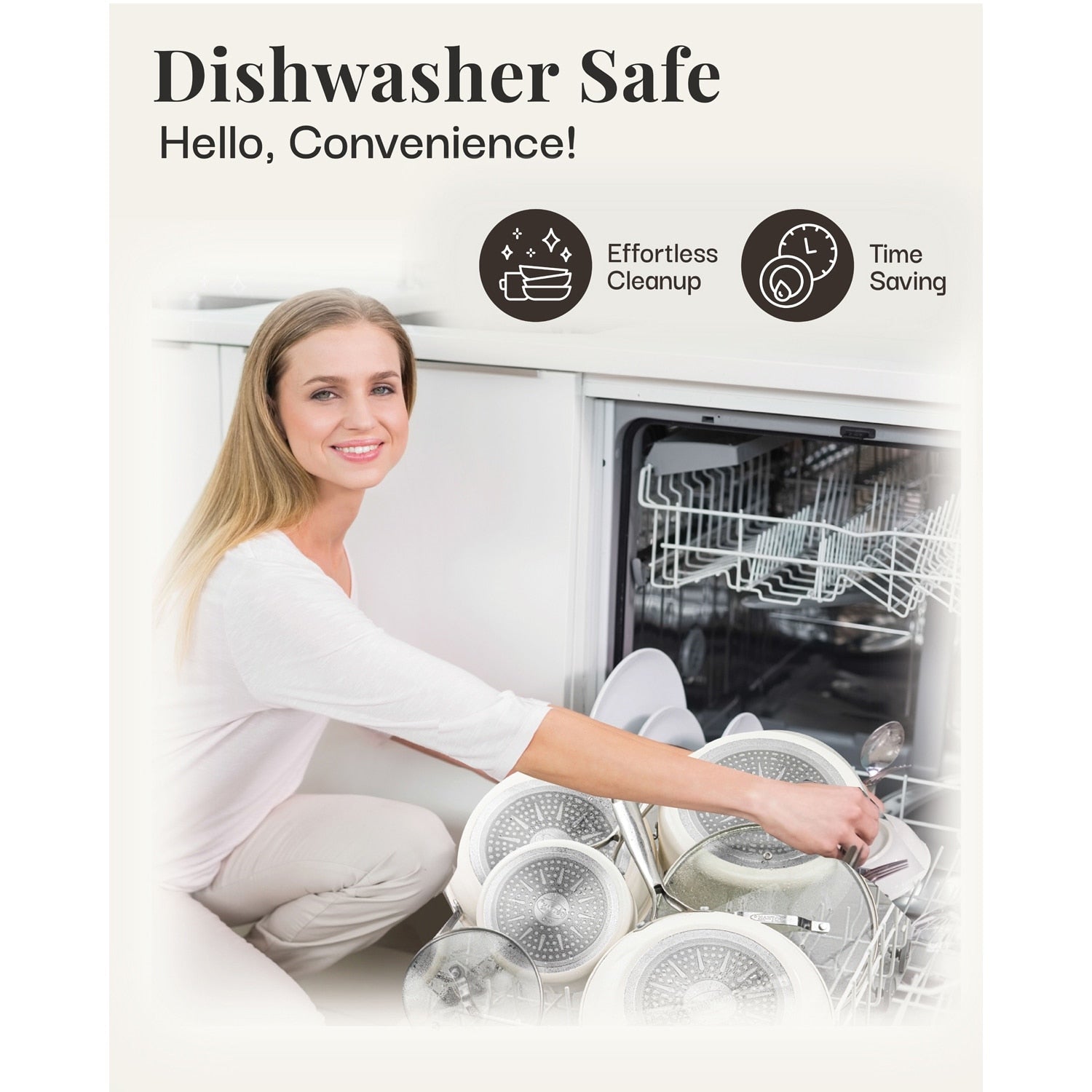 Batterie de cuisine Gotham Steel Cream 12 pièces, casseroles et poêles, en céramique ultra antiadhésive avec poignées isolantes