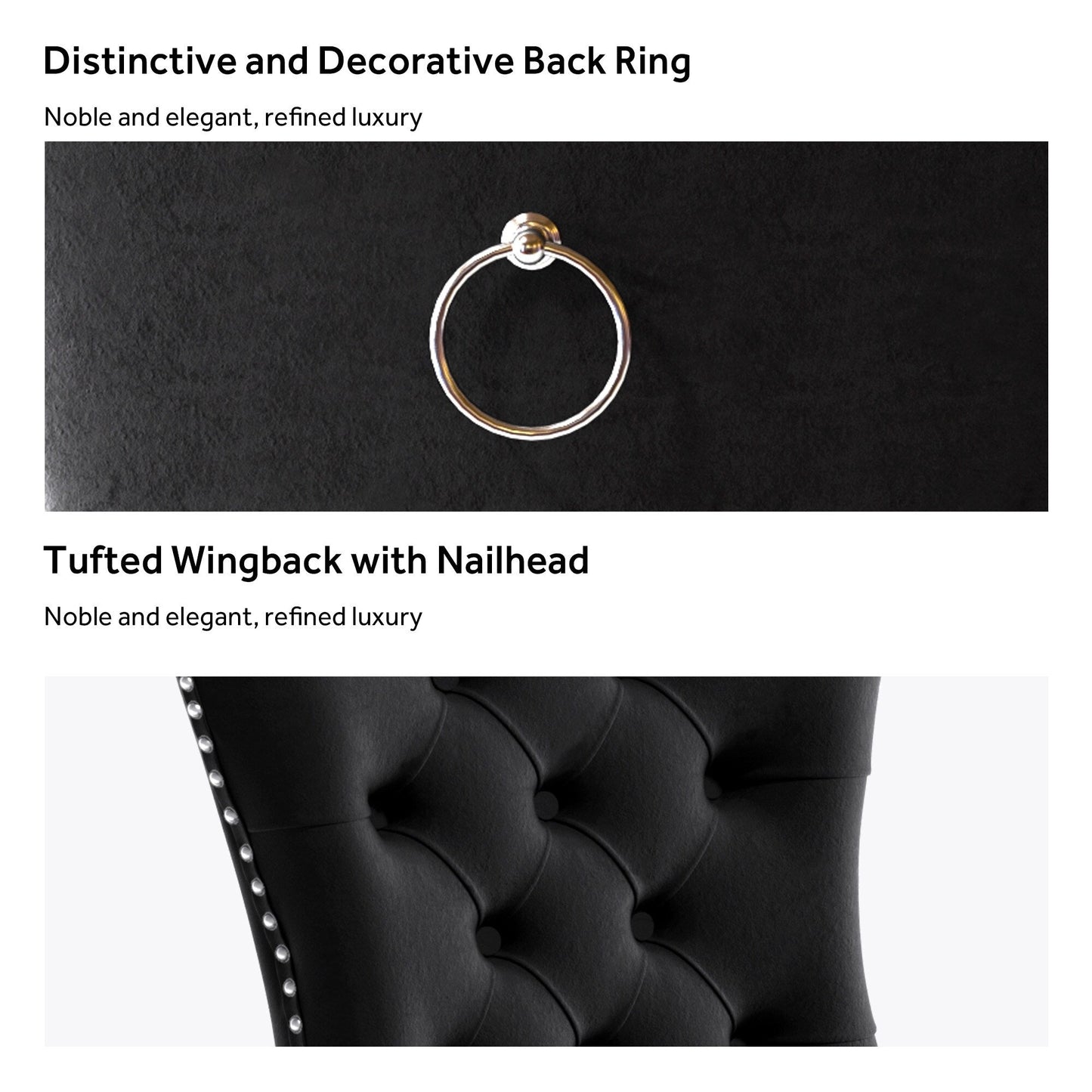 Ces chaises de salle à manger à oreilles sont fabriquées en velours de haute qualité, très résistant à l'usure et à la décoloration. Épais et luxueux, ce tissu offre un toucher délicat. Cet ensemble de chaises en velours arbore un style Mid-Century très moderne. Son dossier haut offre un soutien confortable et solide. De nombreux rivets décoratifs ornent le coussin et le dossier, lui conférant noblesse et élégance, tout en lui conférant une sensation de luxe raffiné. Nous fournissons des instructions et des vidéos de montage. Pour toute question, n'hésitez pas à nous contacter.