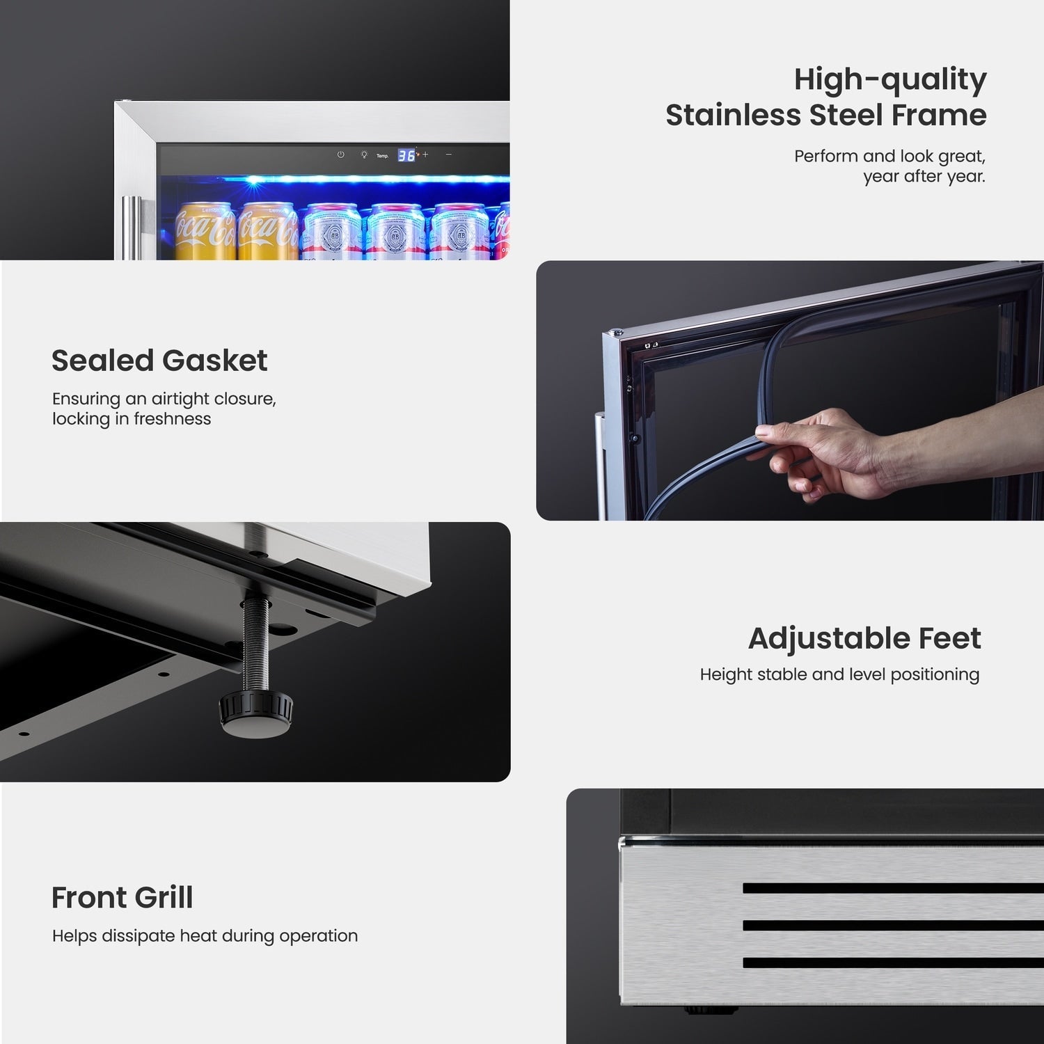 Design élégant et sécurisé : Ce réfrigérateur à boissons est doté d'une élégante porte en acier inoxydable avec poignée en L et double vitrage résistant aux UV. Son esthétique moderne s'intègre parfaitement à tous les styles de décoration.