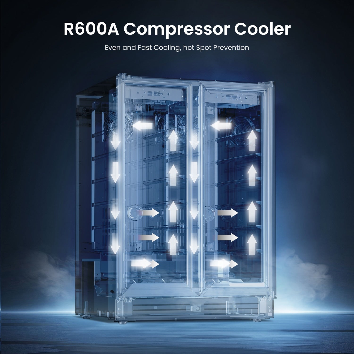 Refroidissement écologique et efficace : Doté du réfrigérant R600a et certifié DOE, le refroidisseur à vin et boissons Yeego offre un refroidissement rapide et homogène tout en économisant de l'énergie. Le système de ventilation frontale améliore la circulation de l'air et la dissipation de la chaleur, tandis que le filtre à charbon actif élimine les odeurs, préservant ainsi la fraîcheur de l'intérieur.