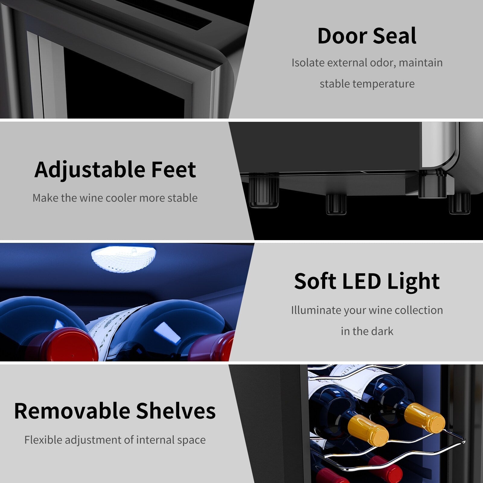 Ce refroidisseur à vin pour 6 bouteilles est un appareil élégant et moderne, conçu pour les amateurs de vin disposant d'un espace limité. Son design compact, avec son boîtier noir aux touches argentées et sa porte vitrée, en fait un ajout élégant à tout intérieur, que ce soit sur un comptoir de cuisine, une table d'appoint de salon ou une salle de pause au bureau. Technologie de refroidissement avancée Système de refroidissement et de circulation d'air amélioré : Il intègre un circuit de refroidissement à semi-conducteur et un ventilateur de circulation d'air. Cette combinaison garantit un fonctionnement économe en énergie, un faible niveau sonore et des vibrations minimales, créant ainsi un environnement idéal pour le stockage du vin sans perturber son vieillissement. Fonctionnement ultra-silencieux : Fonctionnant à ≤ 38 dB, le refroidisseur à vin fonctionne discrètement, vous permettant de profiter d'un environnement paisible pendant que votre vin est correctement stocké. Contrôle et affichage de la température Contrôle intelligent par simple pression : L'écran tactile intuitif facilite l'utilisation. Vous pouvez régler la température entre 8 et 18 °C, allumer et éteindre l'éclairage LED et même convertir les températures Fahrenheit en Celsius en quelques clics. Maintien précis de la température : un capteur intégré et un système de refroidissement avancé fonctionnent ensemble pour maintenir une température interne stable, essentielle pour préserver la qualité et la saveur de votre vin. Fonctionnalités de stockage Étagères amovibles : Le refroidisseur à vin est livré avec des étagères amovibles, offrant la flexibilité d'ajuster l'espace interne en fonction de la taille et de la forme de vos bouteilles de vin. Porte en verre isolante à double vitrage : cette fonction isole efficacement la lumière directe du soleil et les rayons UV extérieurs, protégeant le vin des dommages causés par la lumière, tout en aidant à maintenir une température interne stable. Fonctionnalités supplémentaires Joint de porte : Le joint de porte de haute qualité isole les odeurs externes et maintient une température interne stable, garantissant que votre vin ne soit pas affecté par des facteurs externes. Pieds réglables : Ces pieds améliorent la stabilité du refroidisseur à vin, lui permettant d'être placé sur des surfaces inégales sans vaciller. Lumière LED douce : L'éclairage LED intérieur doux illumine doucement votre collection de vins, ce qui facilite la visualisation et la sélection de vos bouteilles dans des conditions de faible luminosité.