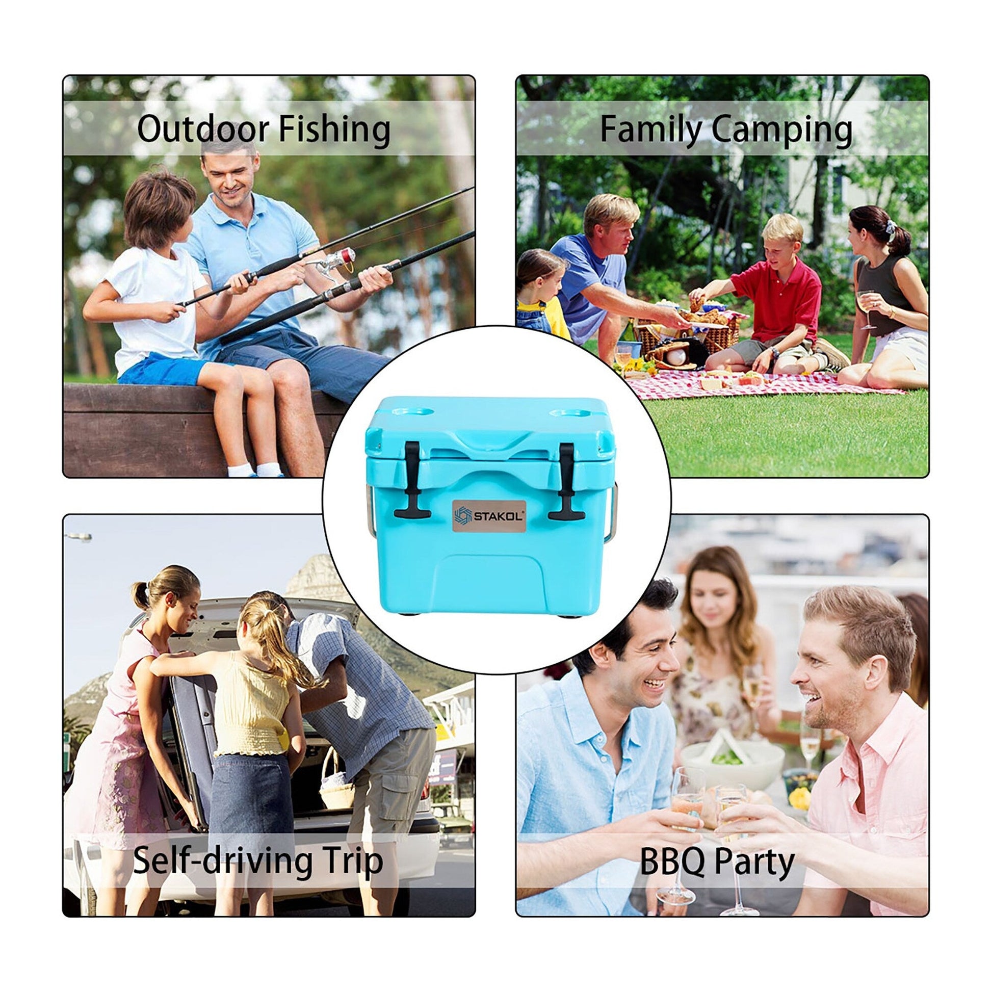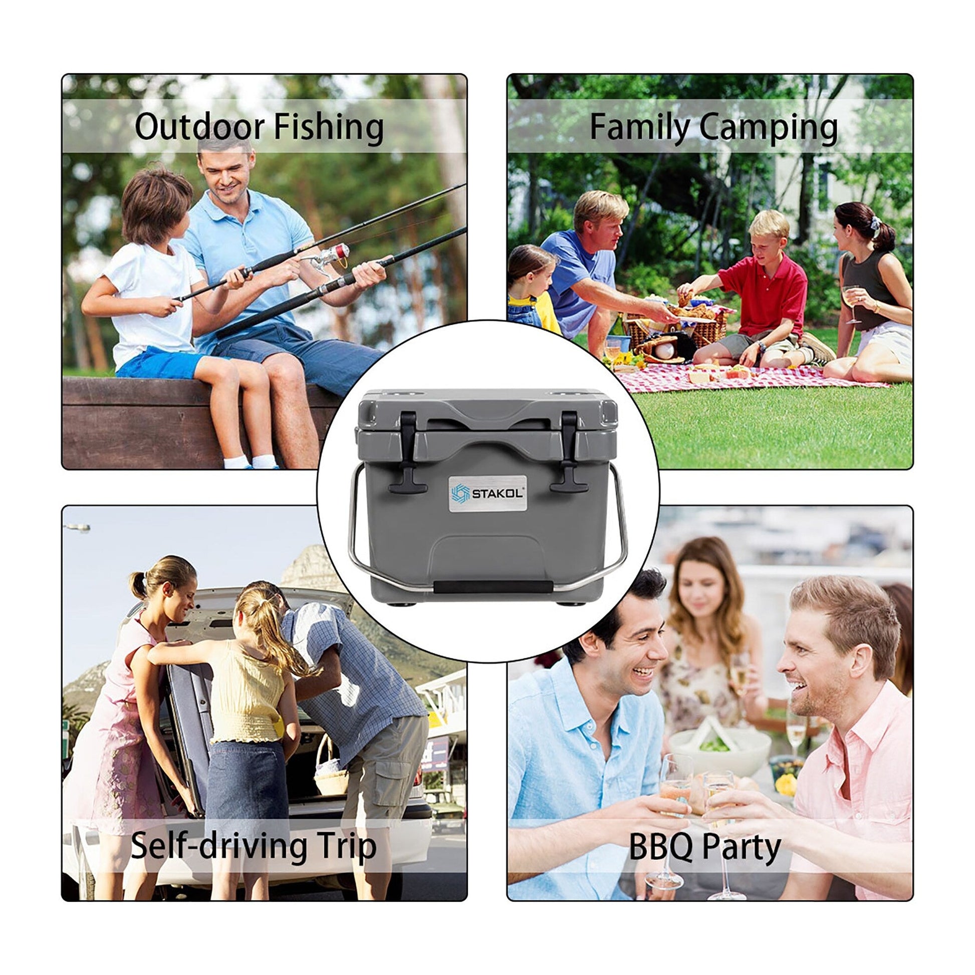 Notre glacière extérieure haut de gamme peut rendre votre vie plus fraîche ! Cette glacière aux performances optimales et à la construction rotomoulée indestructible est sans aucun doute le partenaire idéal pour vos activités de plein air. Fabriquée en PE et PU isolants de qualité supérieure, cette glacière de 16 litres est non toxique et conserve vos aliments, boissons et fruits au frais pendant 3 à 5 jours. Portable, elle s'adapte à diverses situations, comme les barbecues, les pique-niques, la pêche, le camping ou les voyages en voiture. Elle permet également de maintenir les aliments au chaud. Elle est équipée de deux porte-gobelets, de loquets de sécurité, d'un couvercle verrouillable, d'une poignée en acier inoxydable, d'un bouchon de vidange et de repose-pieds. Tous ces détails bien pensés en font une glacière idéale.