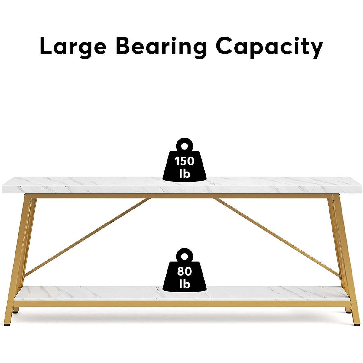 Ajoutez une touche de style industriel rustique à votre salon ou à votre entrée avec cette table de salon classique extra-longue de 180 cm. Ses deux étagères offrent un vaste espace de rangement pour exposer vos livres préférés, vos photos encadrées ou vos œuvres d'art. Sa structure triangulaire robuste et ses épais pieds en métal garantissent une capacité de charge allant jusqu'à 104 kg, tandis que des patins réglables maintiennent la table à niveau sur un sol irrégulier. L'assemblage est facile grâce aux pièces marquées et aux instructions fournies.