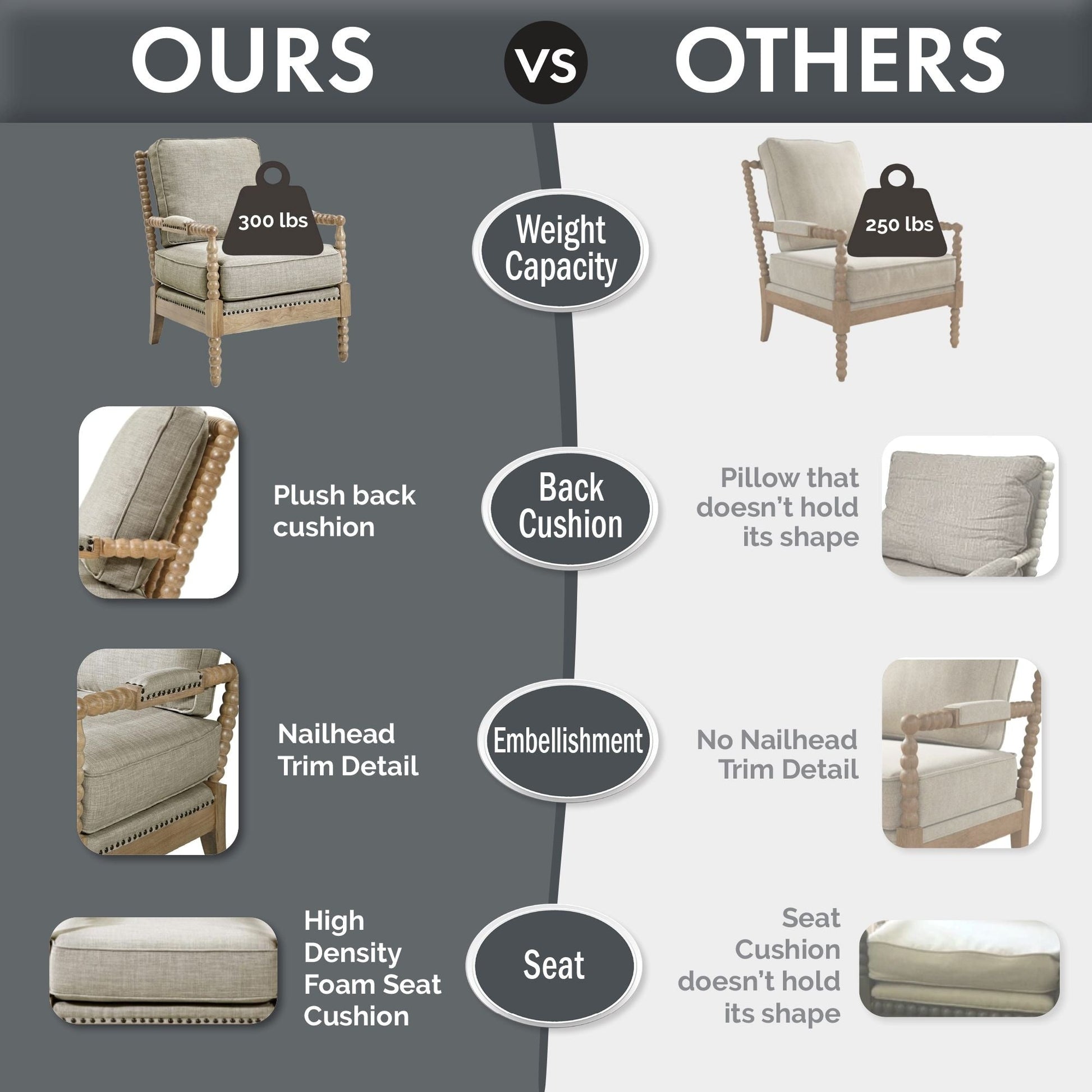 • Construit pour durer avec un cadre en bois dur massif, une mousse haute densité et des sangles pour une durabilité durable