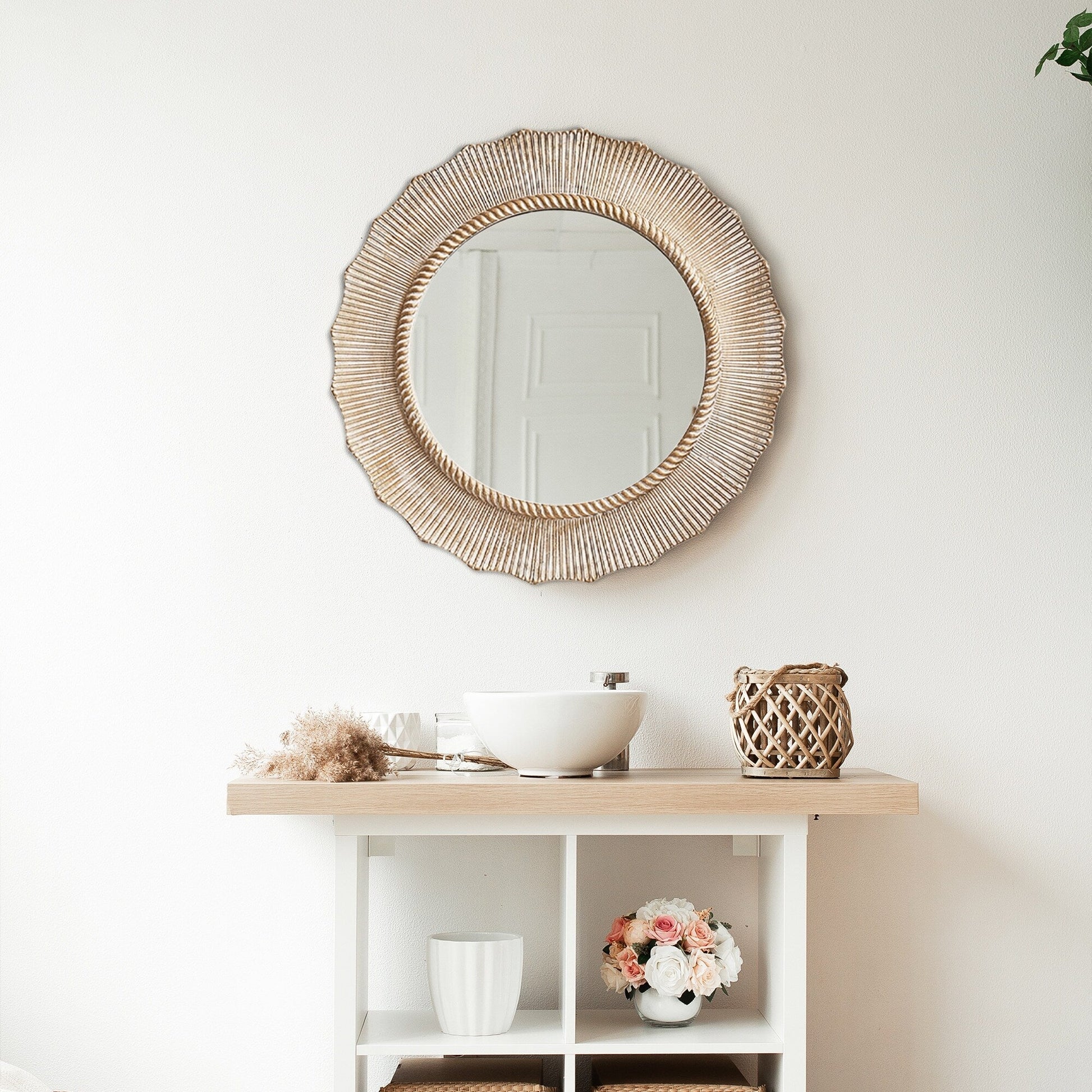 Miroir mural décoratif rond en bois de style bohème beige de 30 po pour salle de bain
