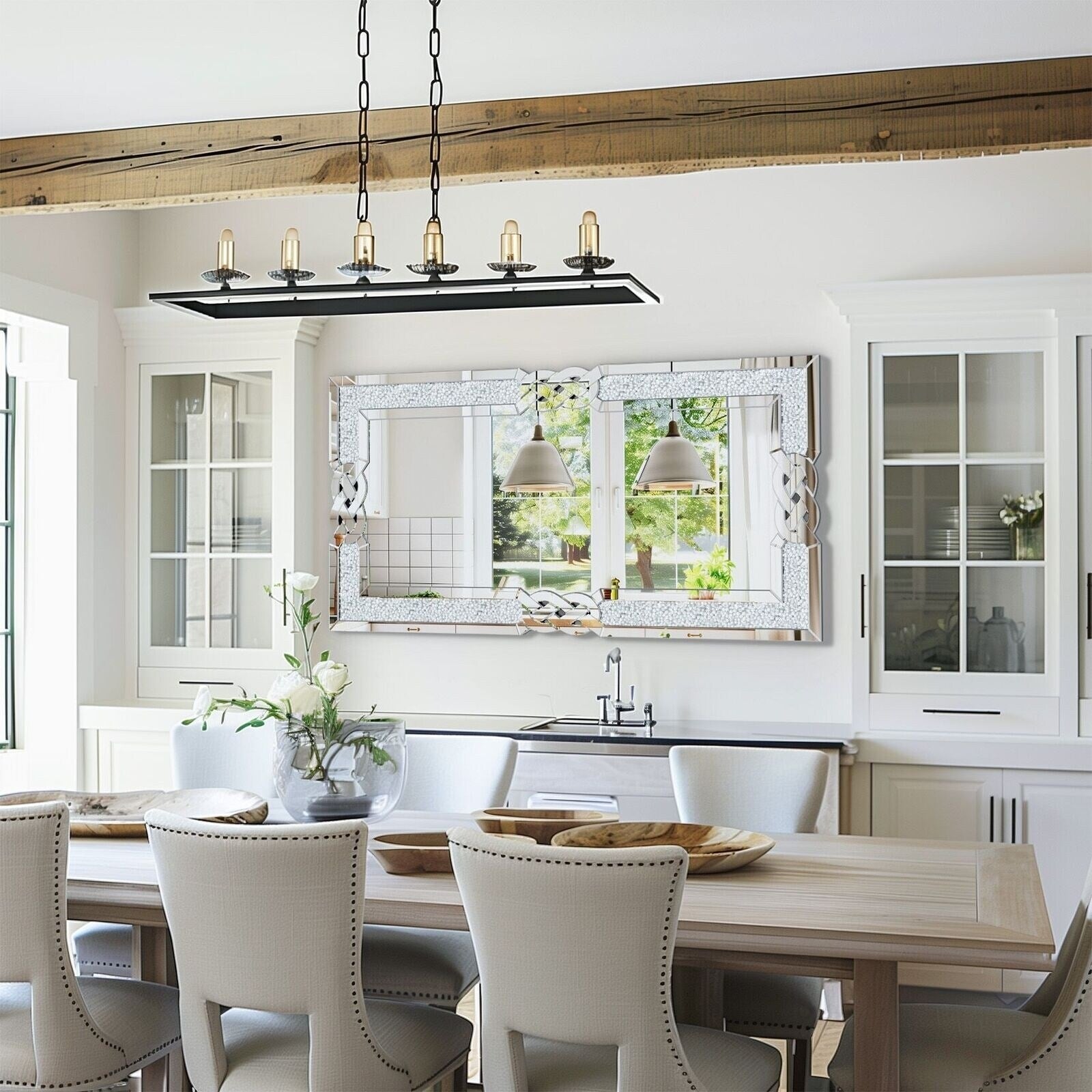Caractéristiques: Idéal pour agrandir l'espace visuel d'une petite pièce en réfléchissant la lumière naturelle. Magnifique miroir diamant bling-crush, incorporant une décoration glamour dans toute la maison. Placez un miroir sur le manteau de cheminée ou l’entrée pour donner de la profondeur et une réflexion de la lumière à la pièce. Miroir en cristal diamant argenté, accrocheur dans n'importe quel espace, complète n'importe quel décor de maison. Accrochez le miroir avec quatre crochets en D à l'arrière, les deux permettant une suspension verticale ou horizontale. Fabriqué à partir de verre argenté de qualité supérieure de 2,5 cm, reflète l'image claire naturellement, sans distorsion. Construit avec un panneau arrière en MDF pour une résistance et une stabilité élevées. Crée un point focal pour le salon, la cheminée, la chambre, la cuisine et le couloir d'entrée. Grande nécessité pour la décoration de la chambre à coucher, de l'entrée, de la salle de bain, de la chambre, de la salle à manger et du salon.