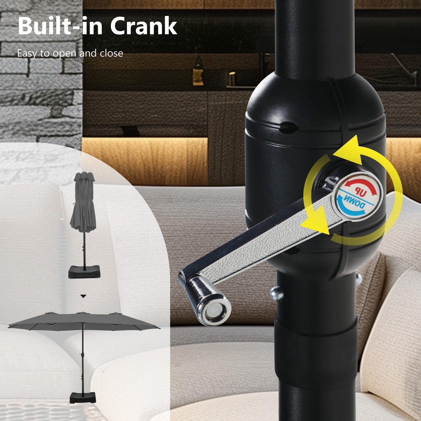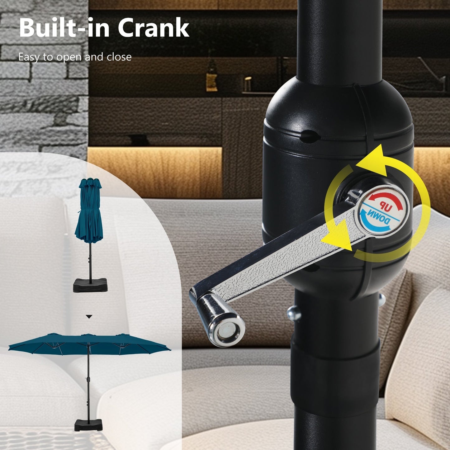 Parasol double extra large de 15 pieds pour patio double face de MAISON ARTS avec base incluse