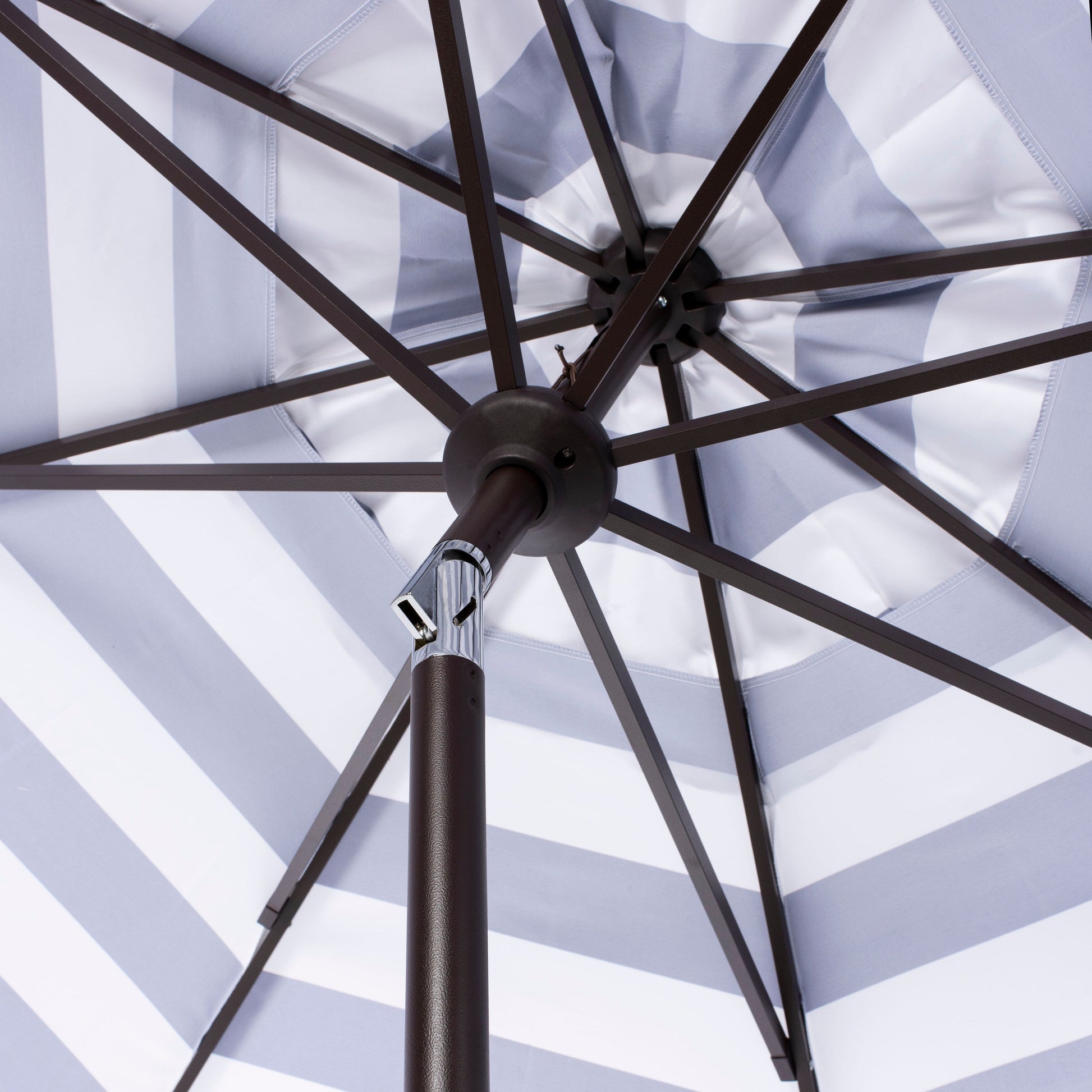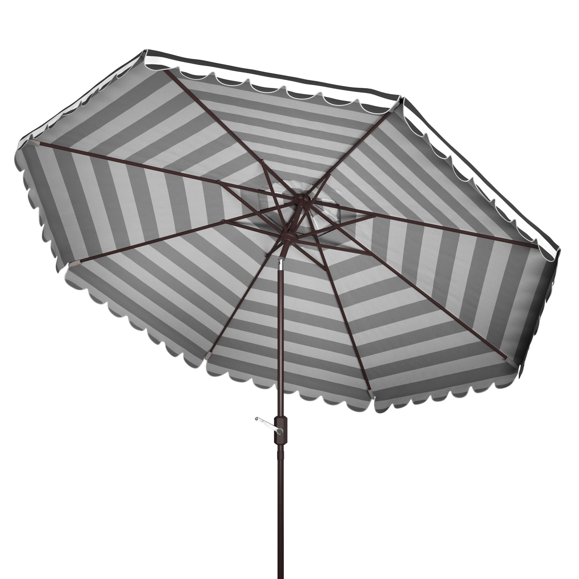 Les élégantes rayures blanches et les détails festonnés de ce parasol chic subliment l'art du bronzage. Sa toile ronde en polyester vous protège des rayons intenses de l'été, et son mât en aluminium marron complète intelligemment sa palette de couleurs neutres.