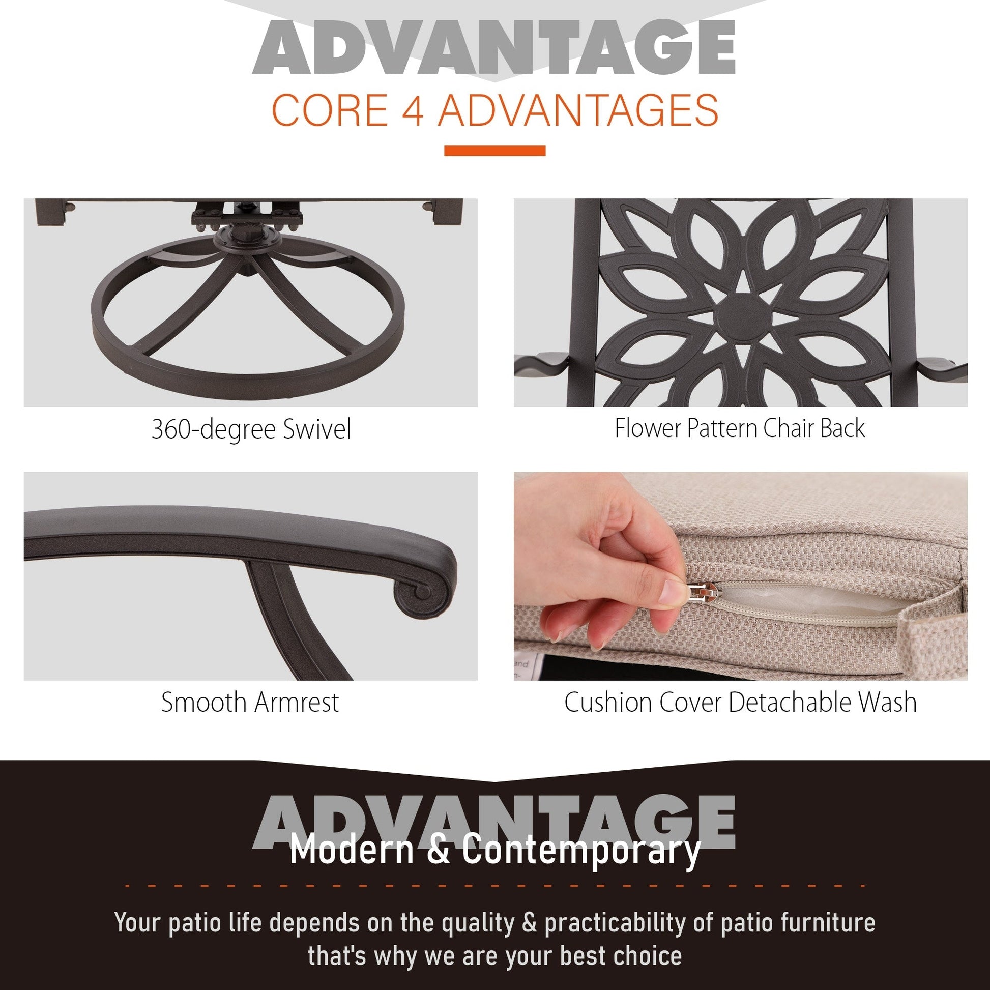 Cet ensemble de salle à manger de terrasse en aluminium moulé s'installe où vous le souhaitez dans votre maison. Vous pouvez le placer à l'extérieur sans aucun entretien et l'utiliser longtemps. Vous pouvez y prendre le thé en famille ou entre amis, y manger, travailler ou lire un livre. Très pratique, il répond à tous vos besoins. C'est l'élément décoratif idéal pour votre intérieur.
