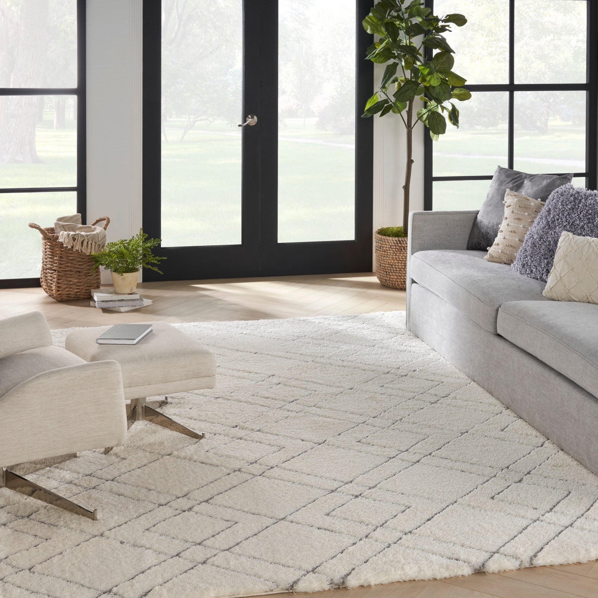 Avec son motif simple d'inspiration scandinave et son fond ivoire neutre, ce luxueux tapis Shag apporte chaleur et confort à votre espace. Fabriqué en polyester ultra-doux, il possède un velours épais de 38 cm où vous adorerez vous détendre. Placez ce tapis géométrique dans votre salon ou votre chambre pour une touche chaleureuse et accueillante.