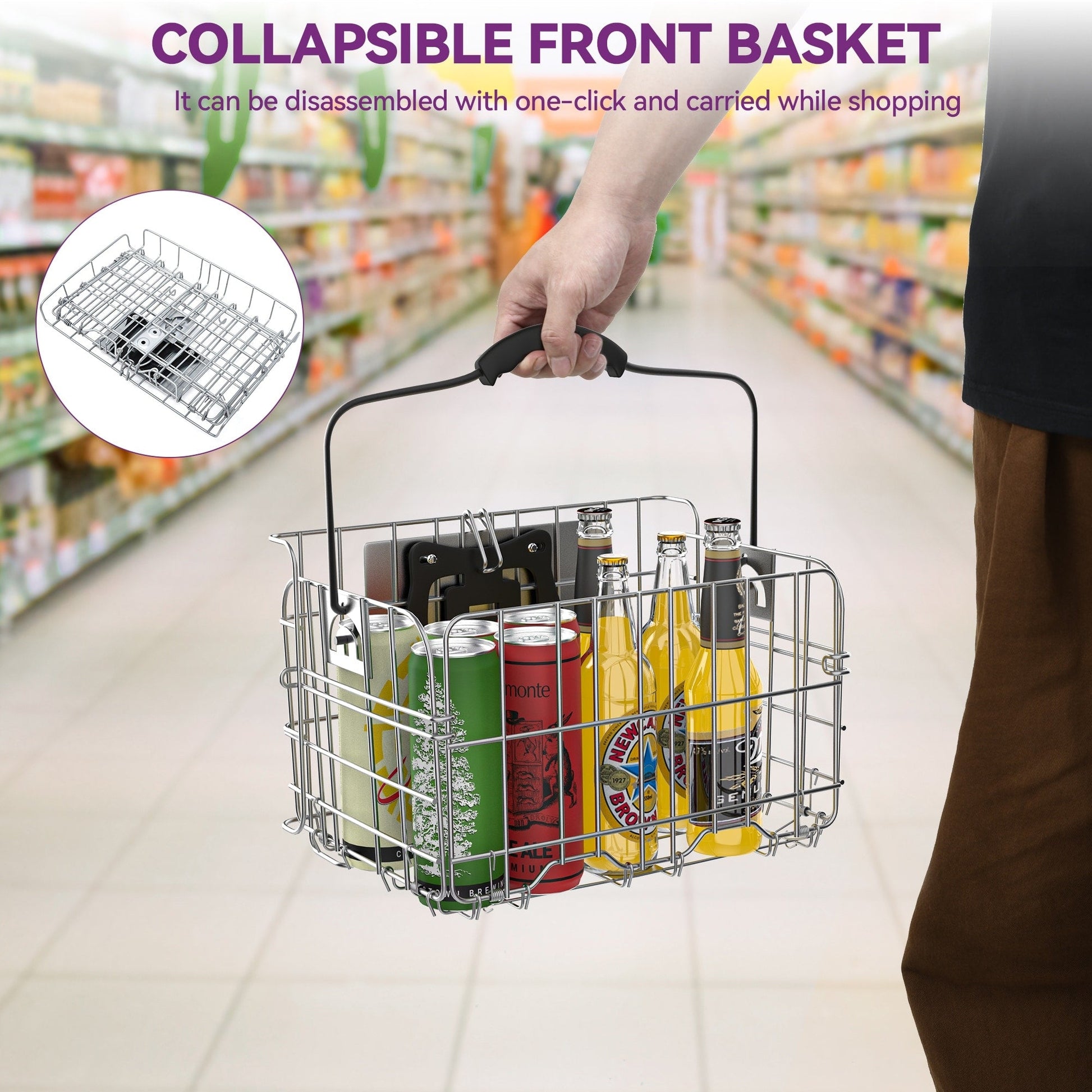 • Panier arrière robuste d'une capacité de 55 lb, parfait pour ranger les courses et même les animaux de compagnie