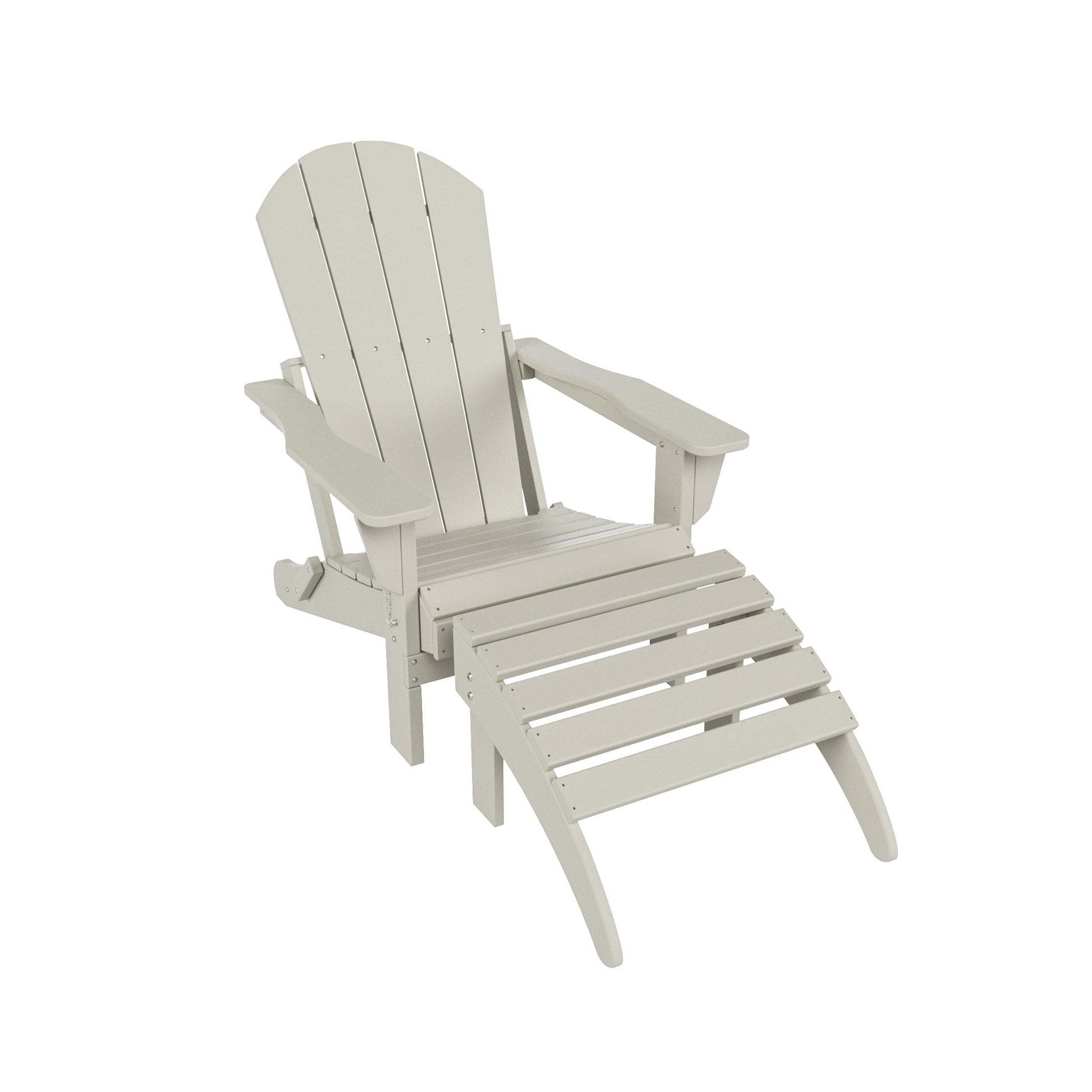 Chaise Adirondack pliable Polytrends Laguna en PEHD pour terrasse extérieure toutes saisons avec pouf (ensemble 2 pièces)