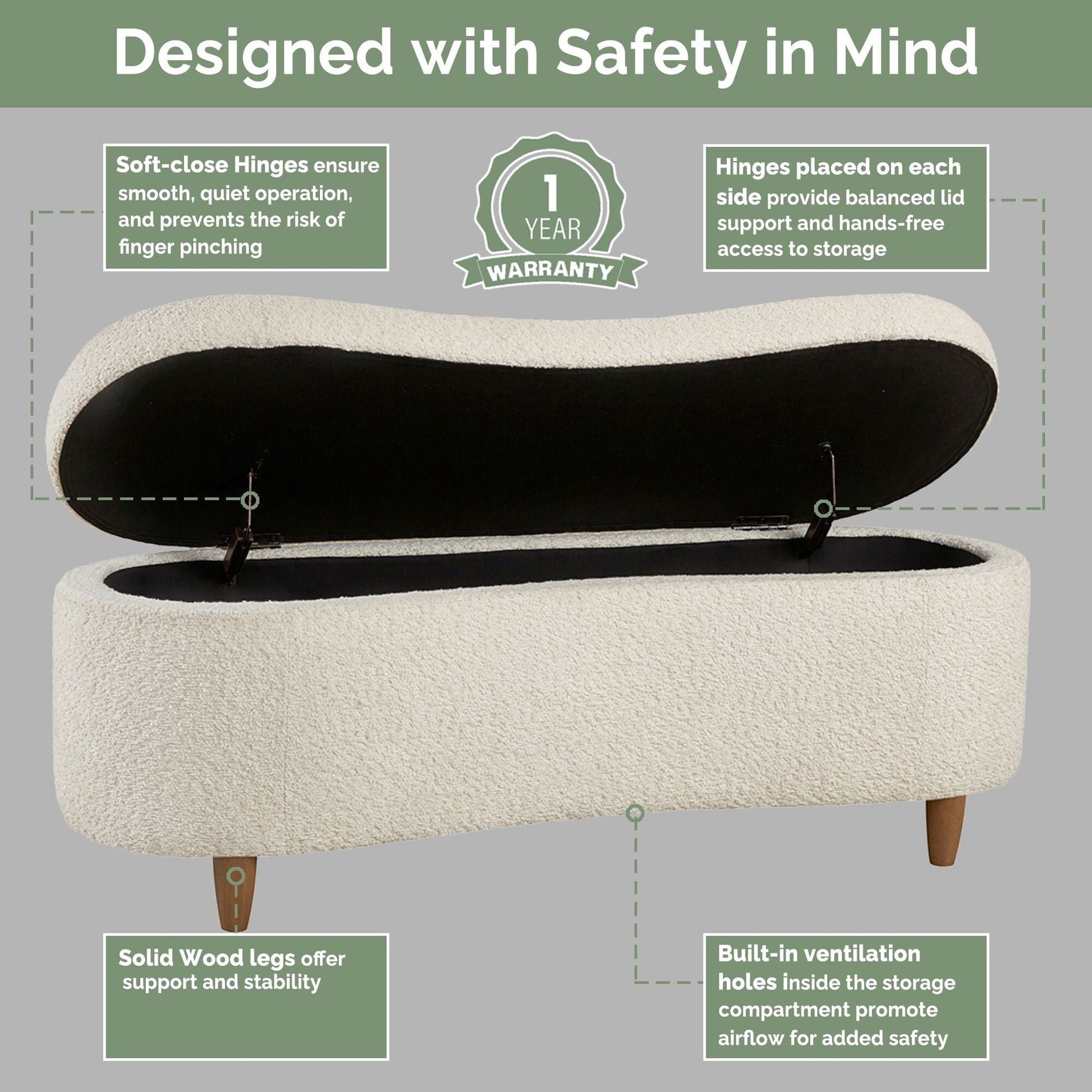 Ajoutez une texture chaleureuse et une fonctionnalité élégante à votre espace avec le banc de rangement Bailey d'INK+IVY. Revêtu d'un tissu doux façon bouclé, ce banc présente une face avant incurvée et un dossier droit, ce qui lui permet de s'adapter parfaitement à un mur ou à un lit. Un couvercle rabattable ouvre sur un intérieur spacieux avec des trous d'aération pour la circulation de l'air et des charnières à fermeture douce pour plus de sécurité. Son assise rembourrée offre une assise d'appoint, idéale pour les chambres, les entrées ou les salons. Ses pieds en bois massif offrent un soutien robuste et une finition naturelle et chaleureuse. Facile à assembler grâce à une simple fixation. Aménagez et rangez votre meuble avec Bailey dès aujourd'hui.