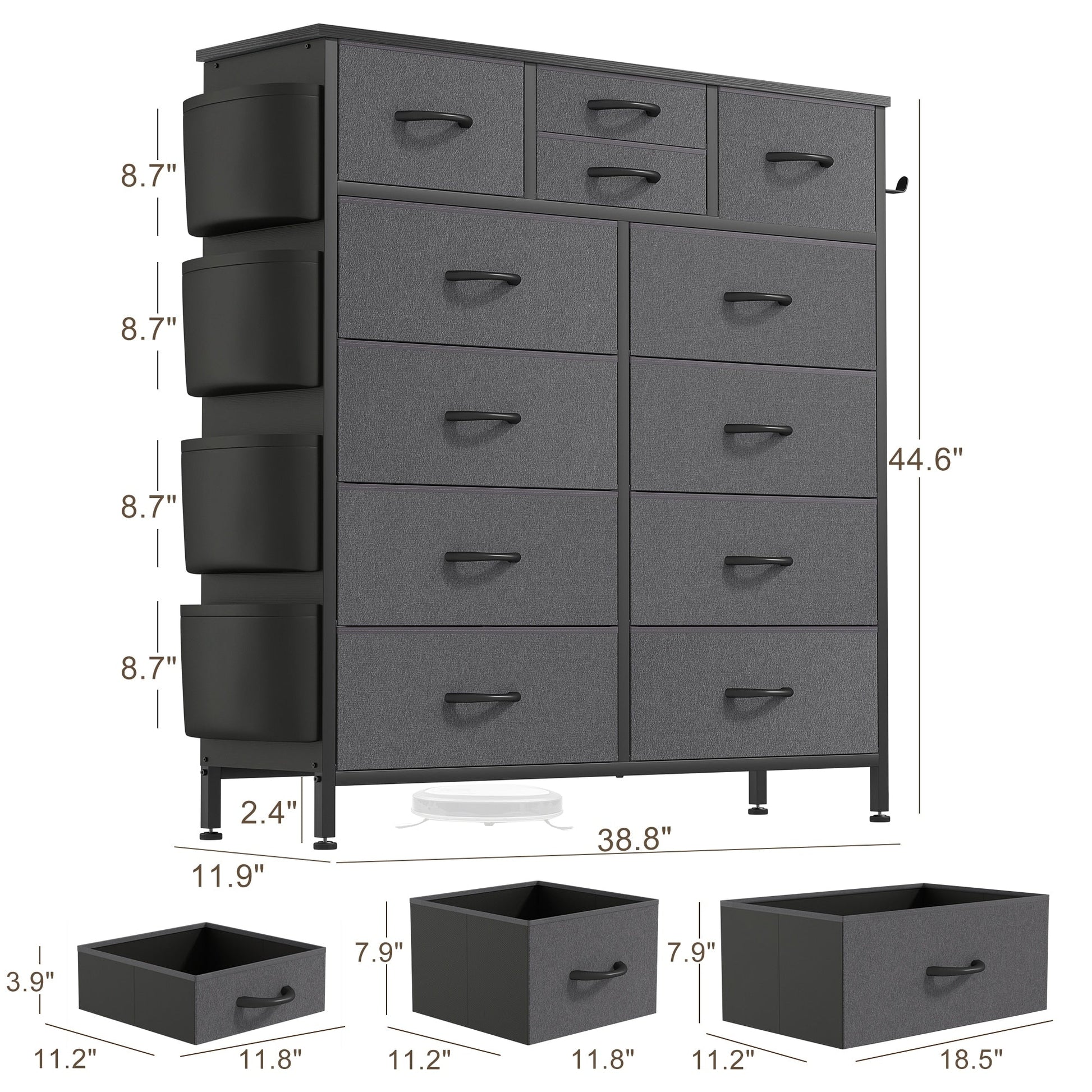 Commode haute en tissu à 12 tiroirs pour chambre à coucher