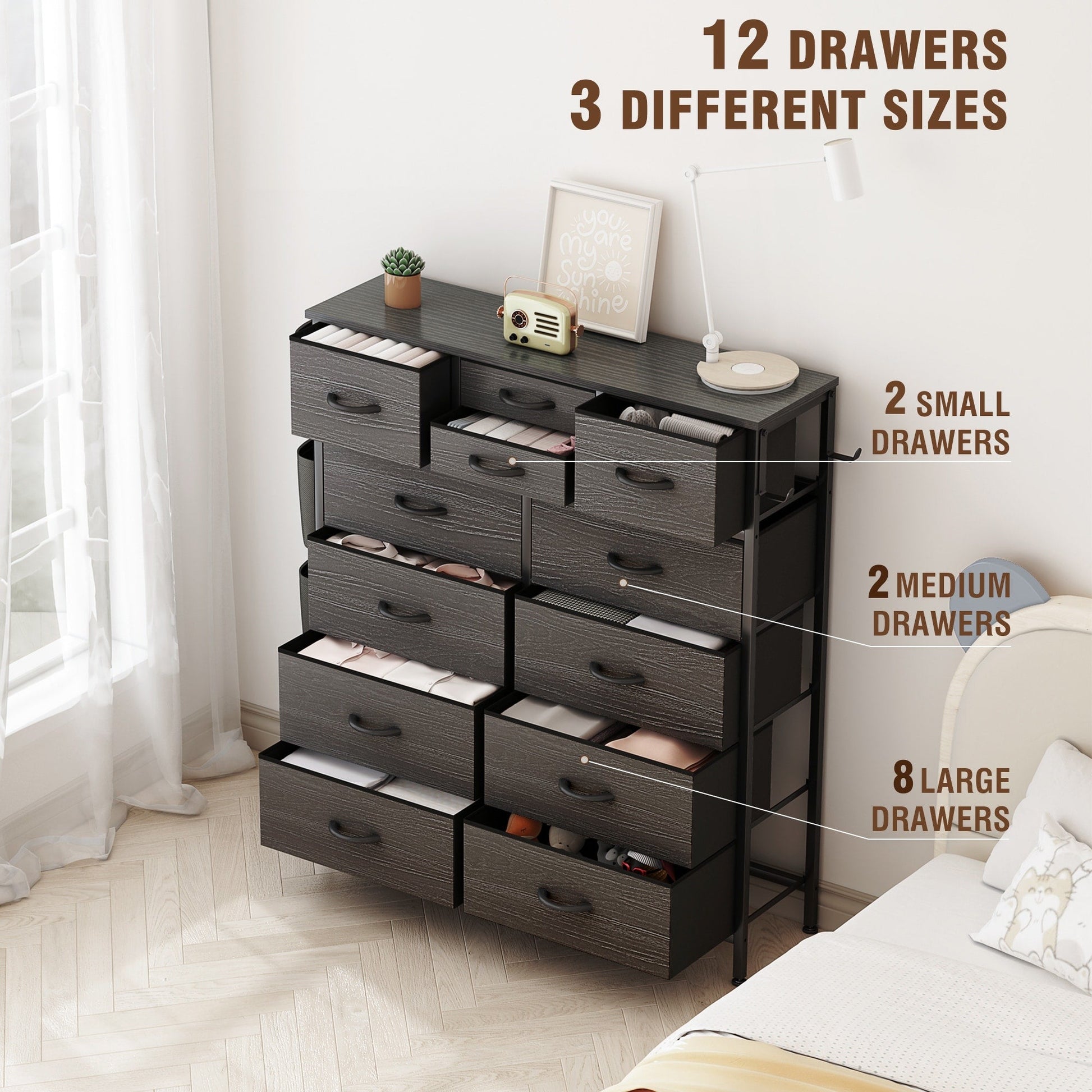 • 【Grand espace de rangement】Capacité spacieuse avec 12 tiroirs en tissu profonds. 3 tailles différentes de coffres à tiroirs en tissu sont idéales pour organiser vos vêtements, couvertures, écharpes, chaussettes et autres.