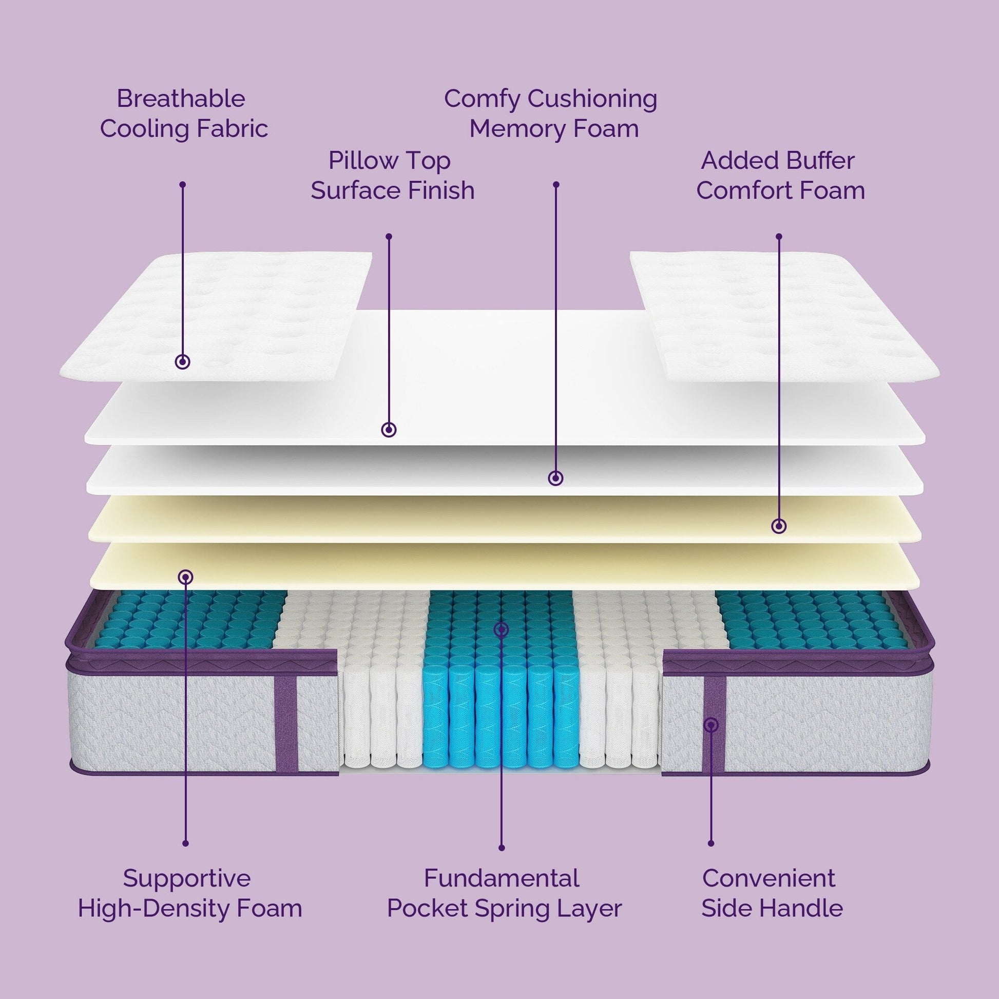 Ressorts ensachés individuels : système innovant de soutien par zones composé de centaines de ressorts ensachés individuels en acier inoxydable. Chaque ressort fonctionne indépendamment pour offrir un soutien uniforme et complet aux sept parties du corps (pieds, jambes, hanches, taille, épaules, cou et tête). Excellente absorption des chocs et résilience, il épouse parfaitement les vertèbres et aide à ajuster et corriger votre posture de sommeil.