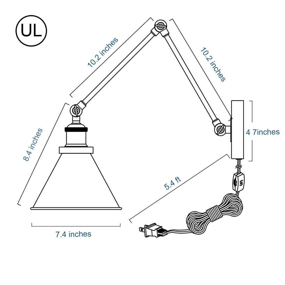 Ensemble de 2 appliques murales modernes à bras pivotant réglables Malryn, à brancher ou à brancher
